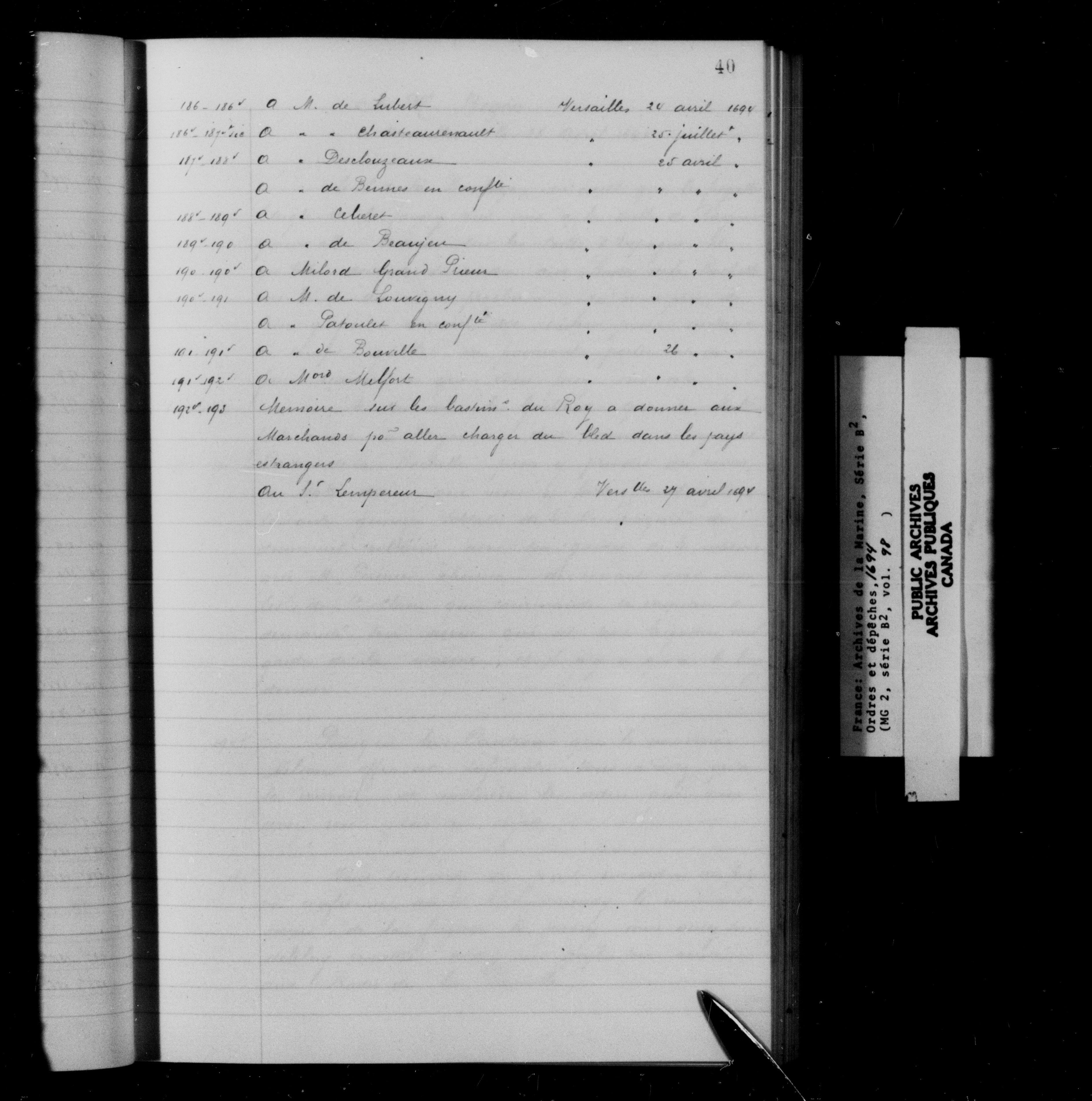 France : Archives de la Marine, Série B2, Ordres et dépêches - 11978
