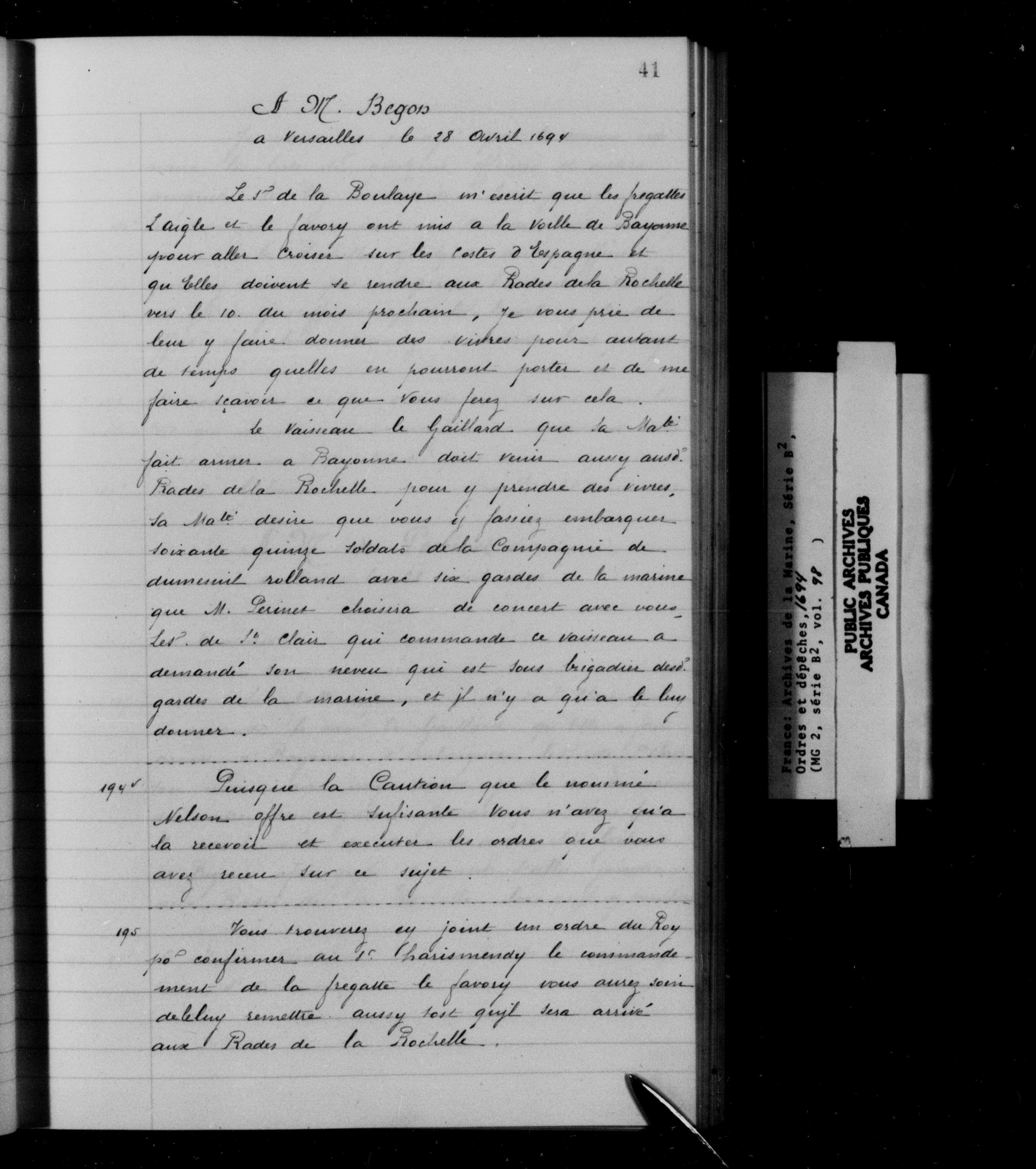 France : Archives de la Marine, Série B2, Ordres et dépêches - 11978