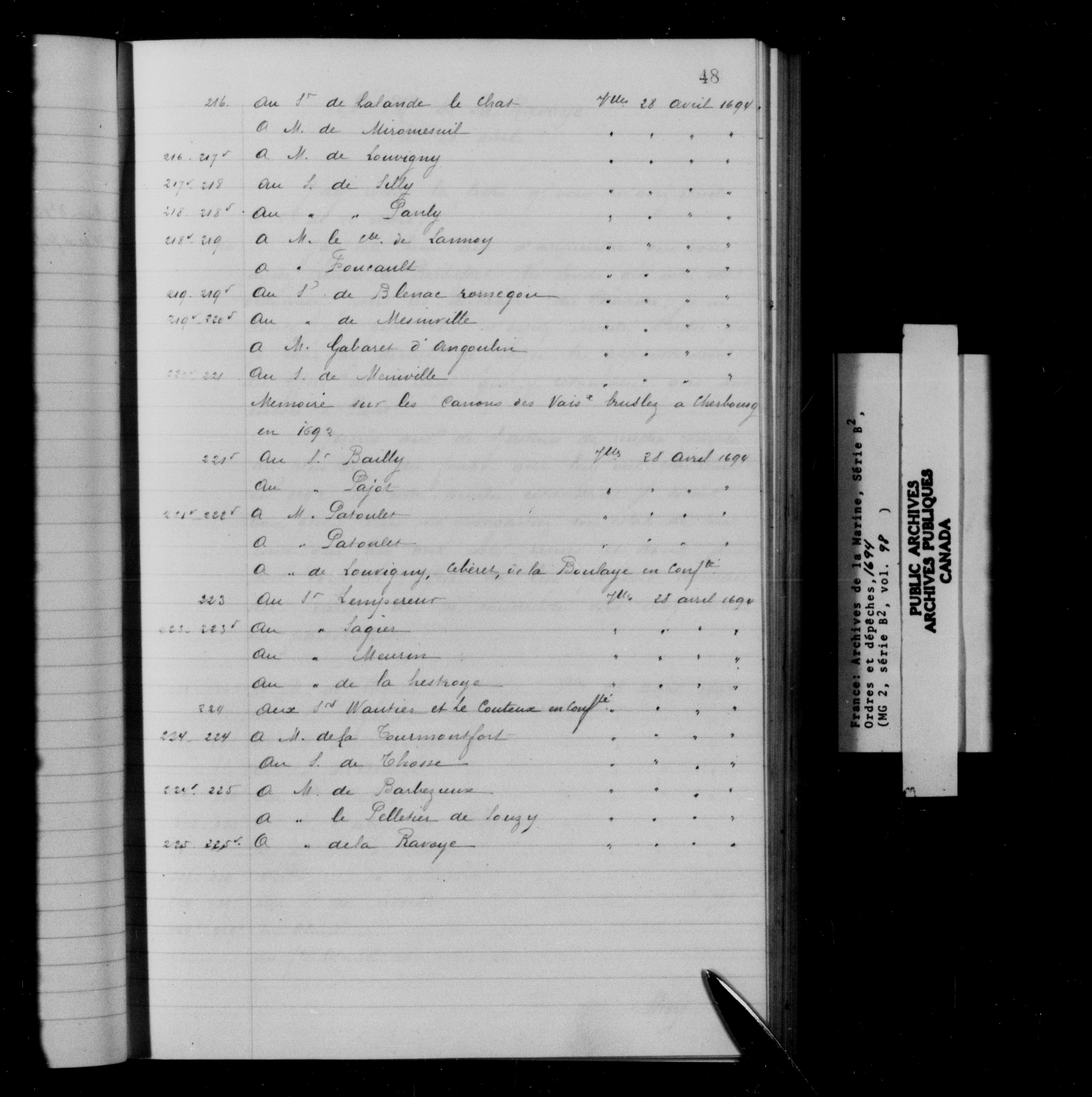 France : Archives de la Marine, Série B2, Ordres et dépêches - 11978