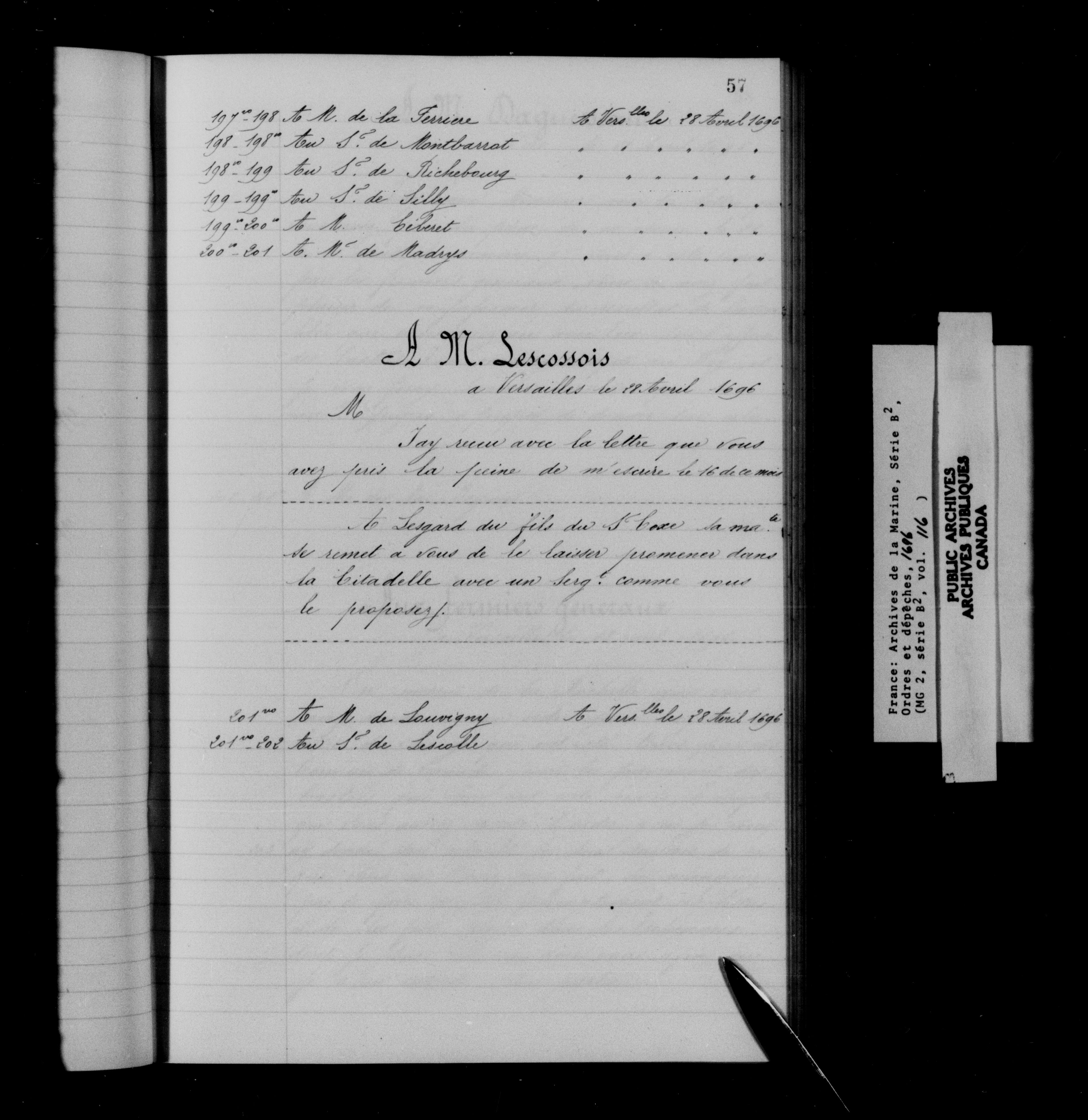 France : Archives de la Marine, Série B2, Ordres et dépêches - 11979