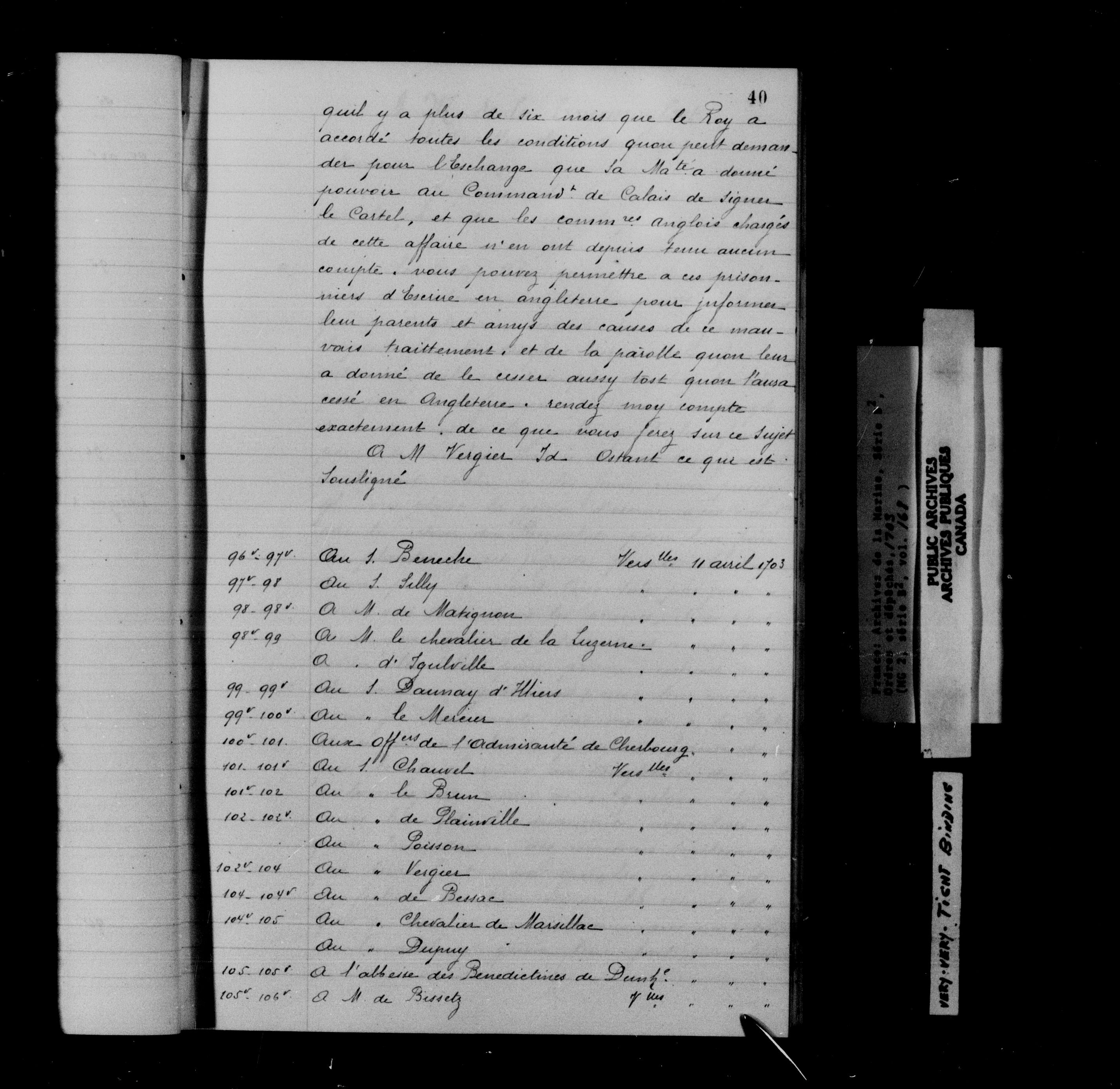 France : Archives de la Marine, Série B2, Ordres et dépêches - 11982