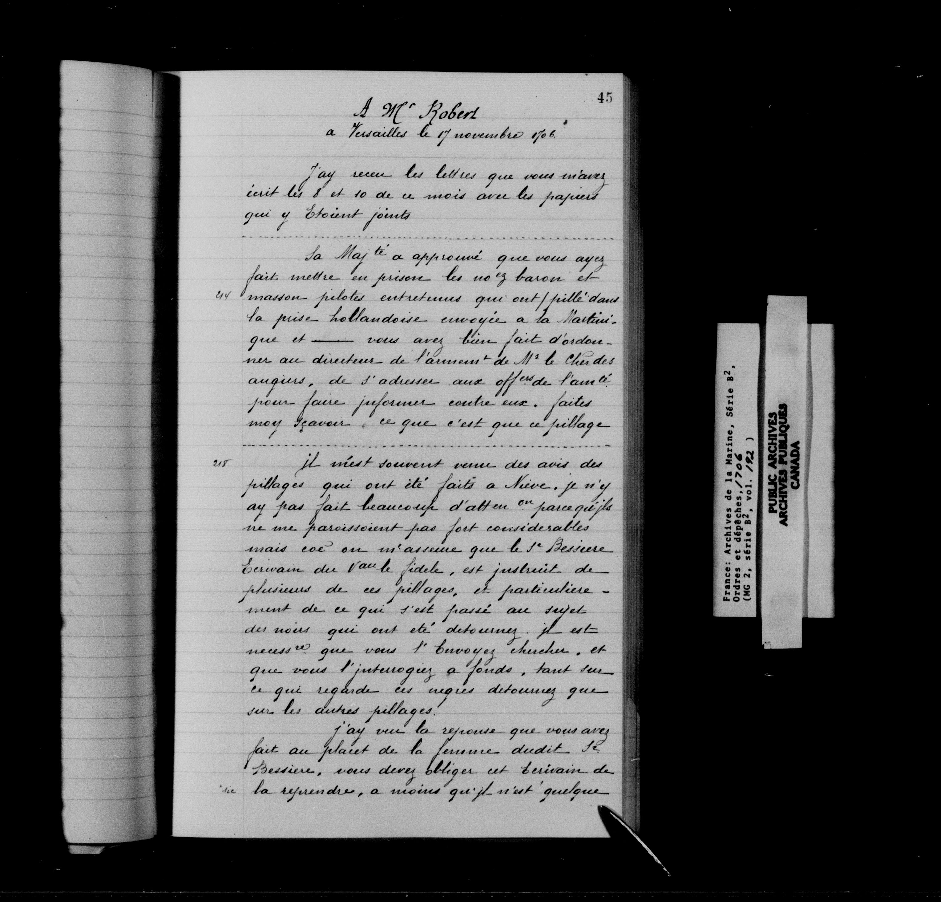 France. Archives de la Marine. Fonds de la Marine : Série B2, Ordres et dépêches : C-11984
