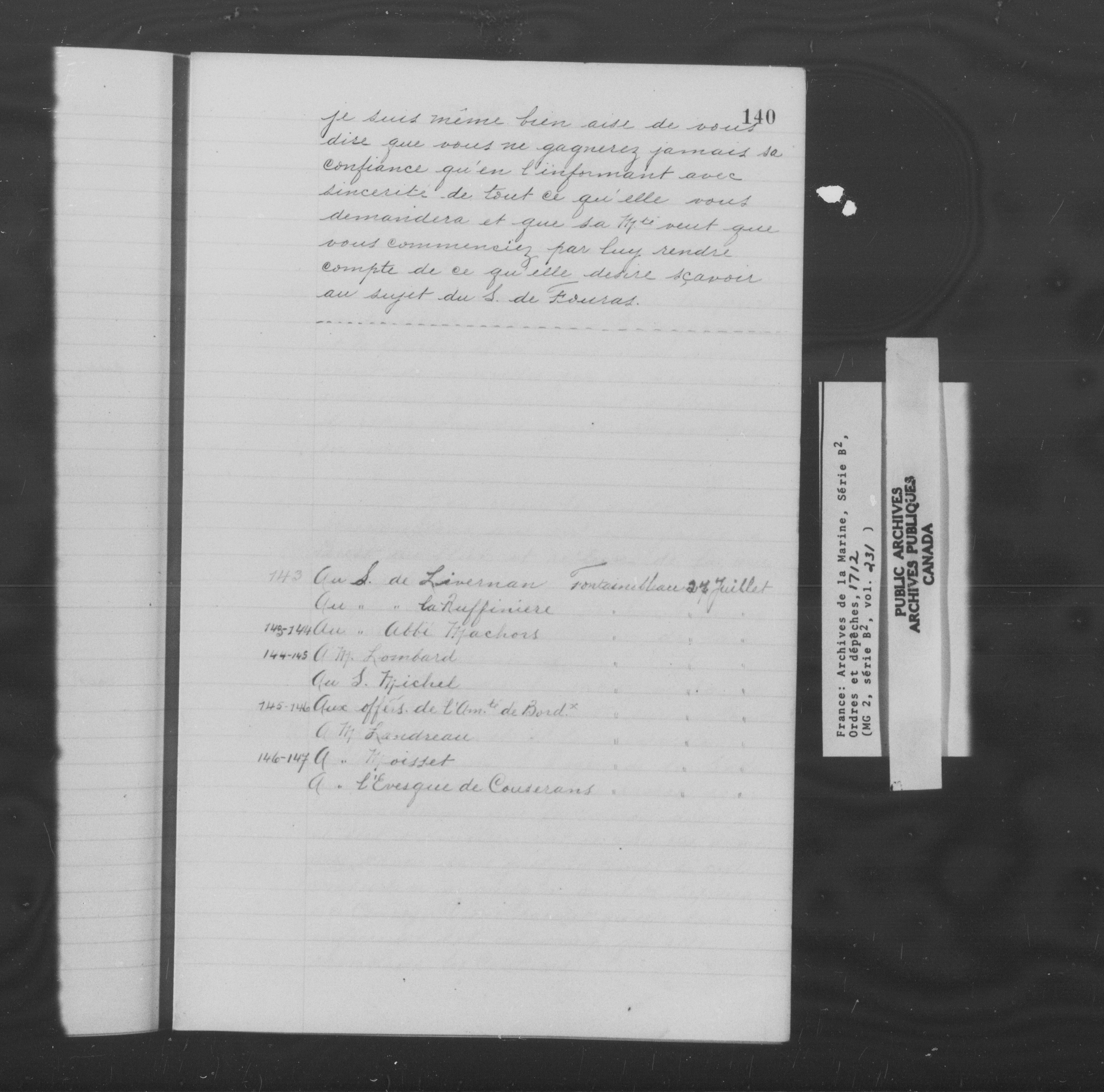 France : Archives de la Marine, Série B2, Ordres et dépêches - 11986