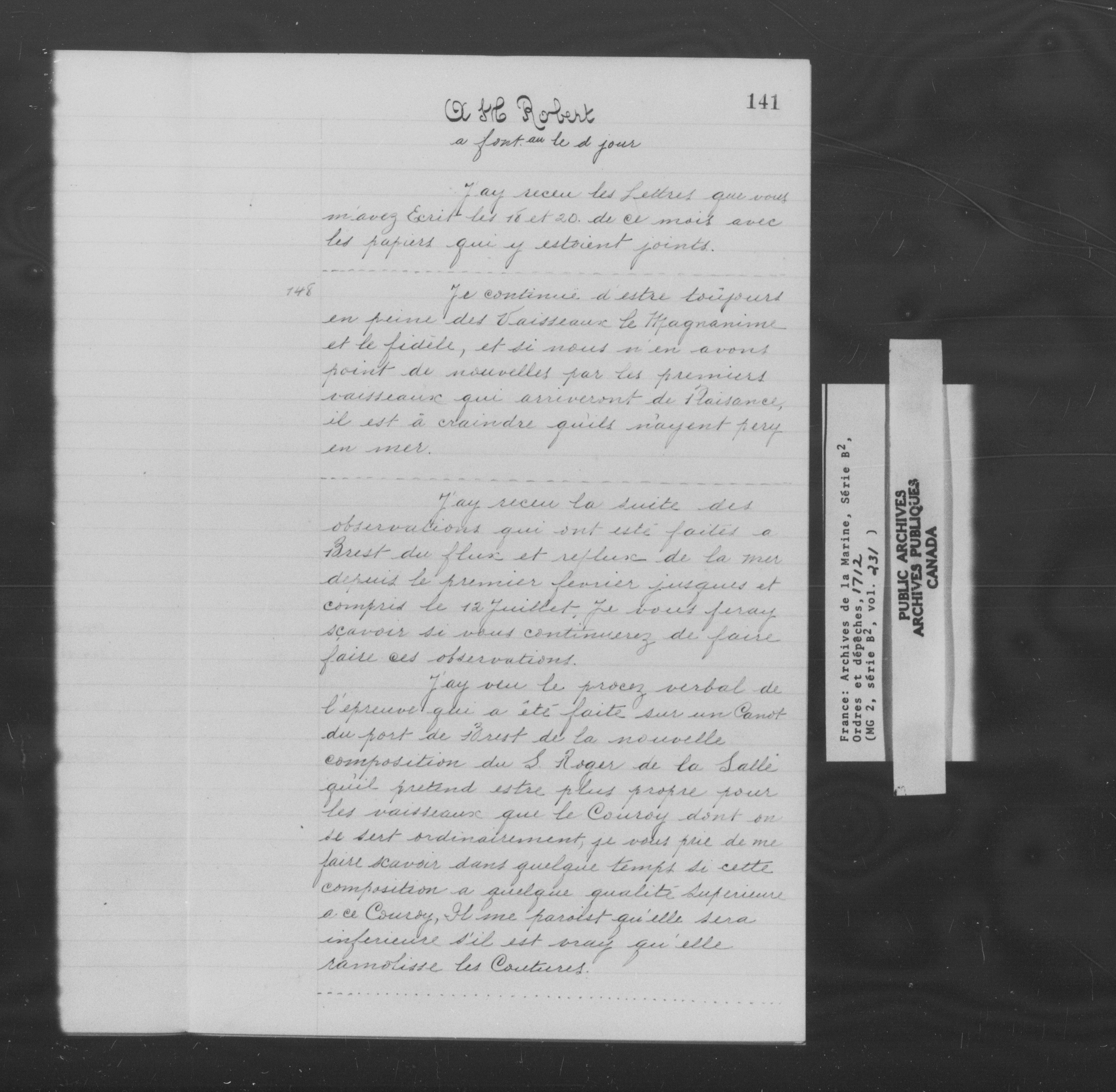 France : Archives de la Marine, Série B2, Ordres et dépêches - 11986