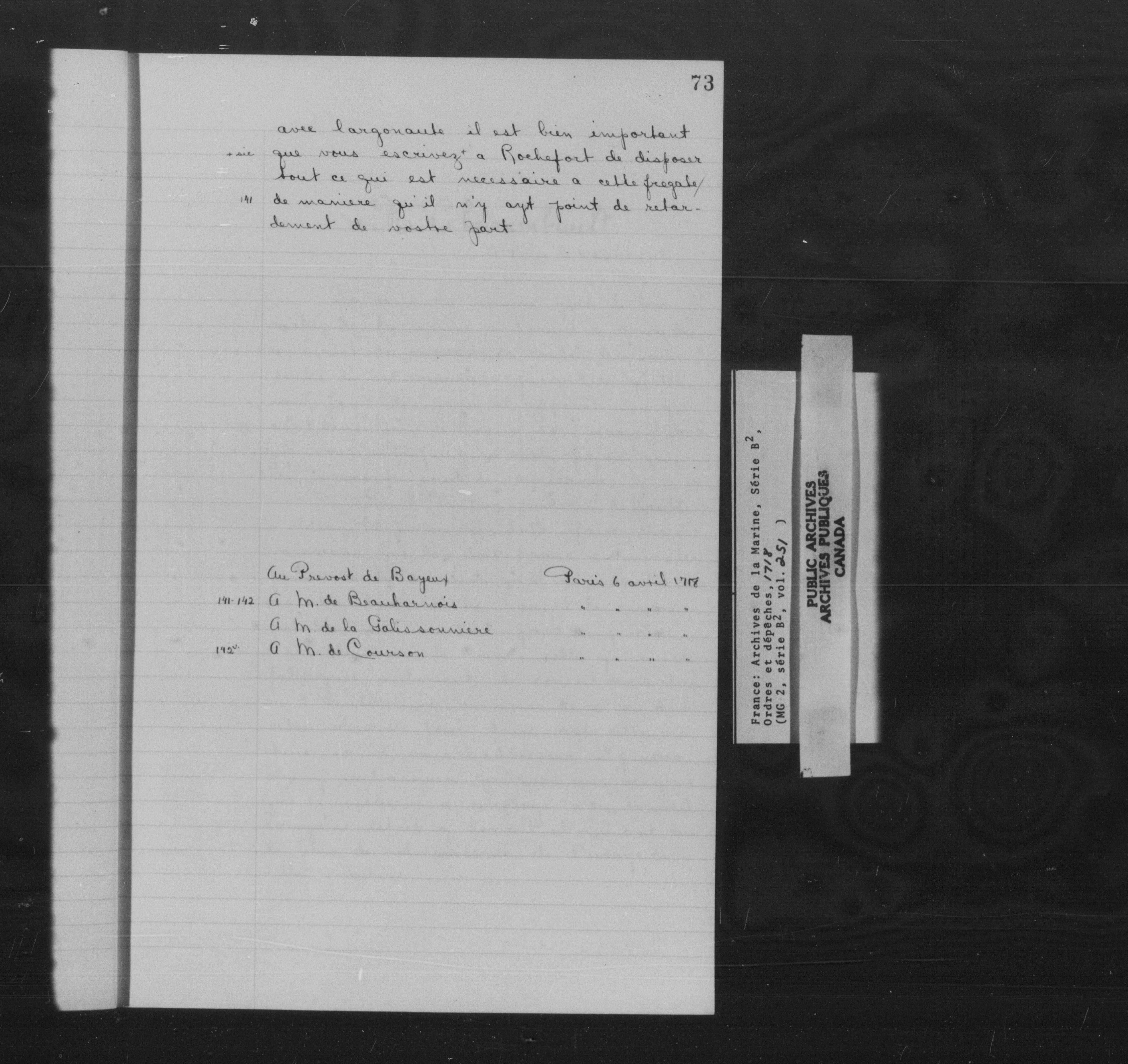 France : Archives de la Marine, Série B2, Ordres et dépêches - 11987