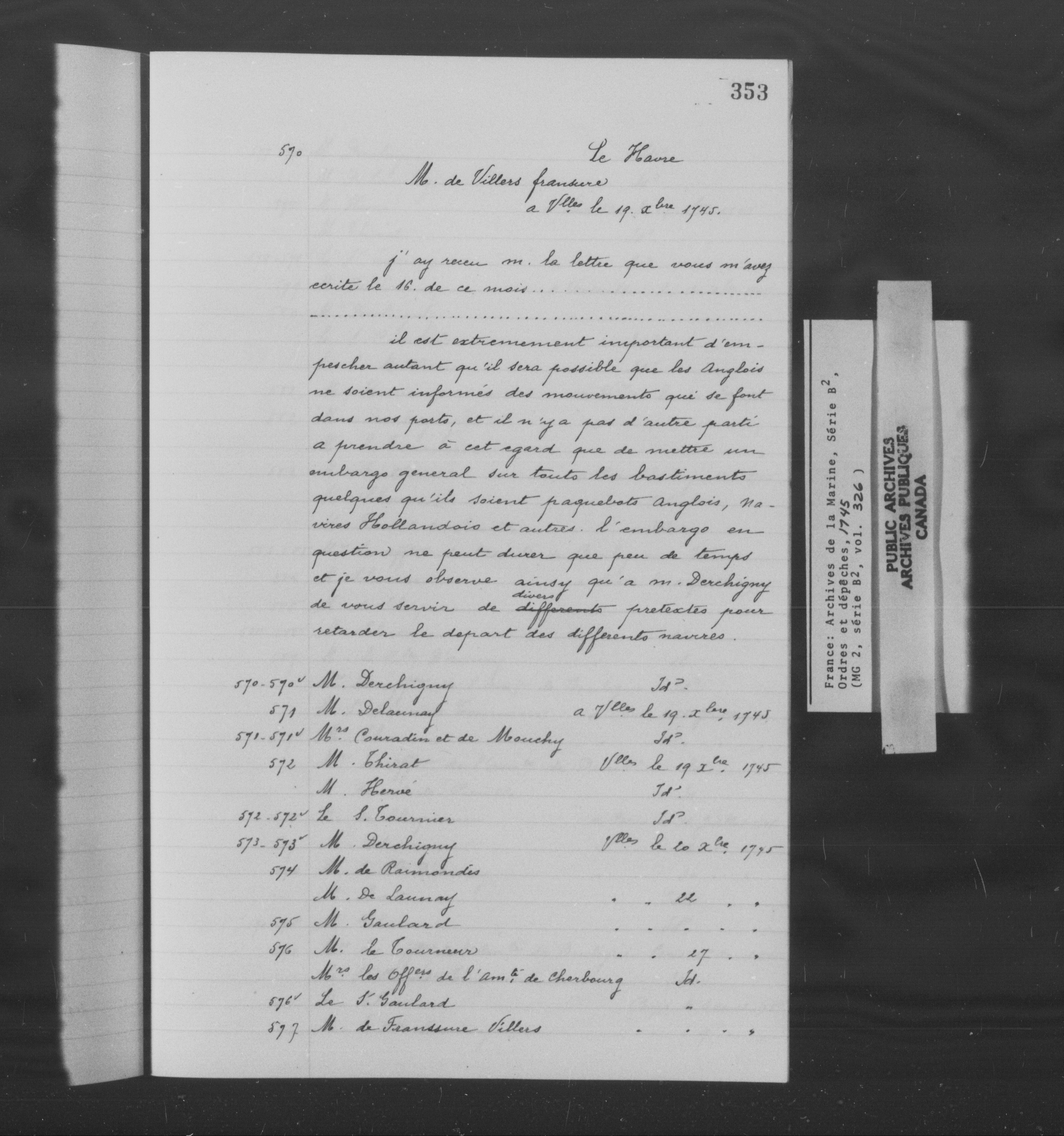 France : Archives de la Marine, Série B2, Ordres et dépêches - 11988