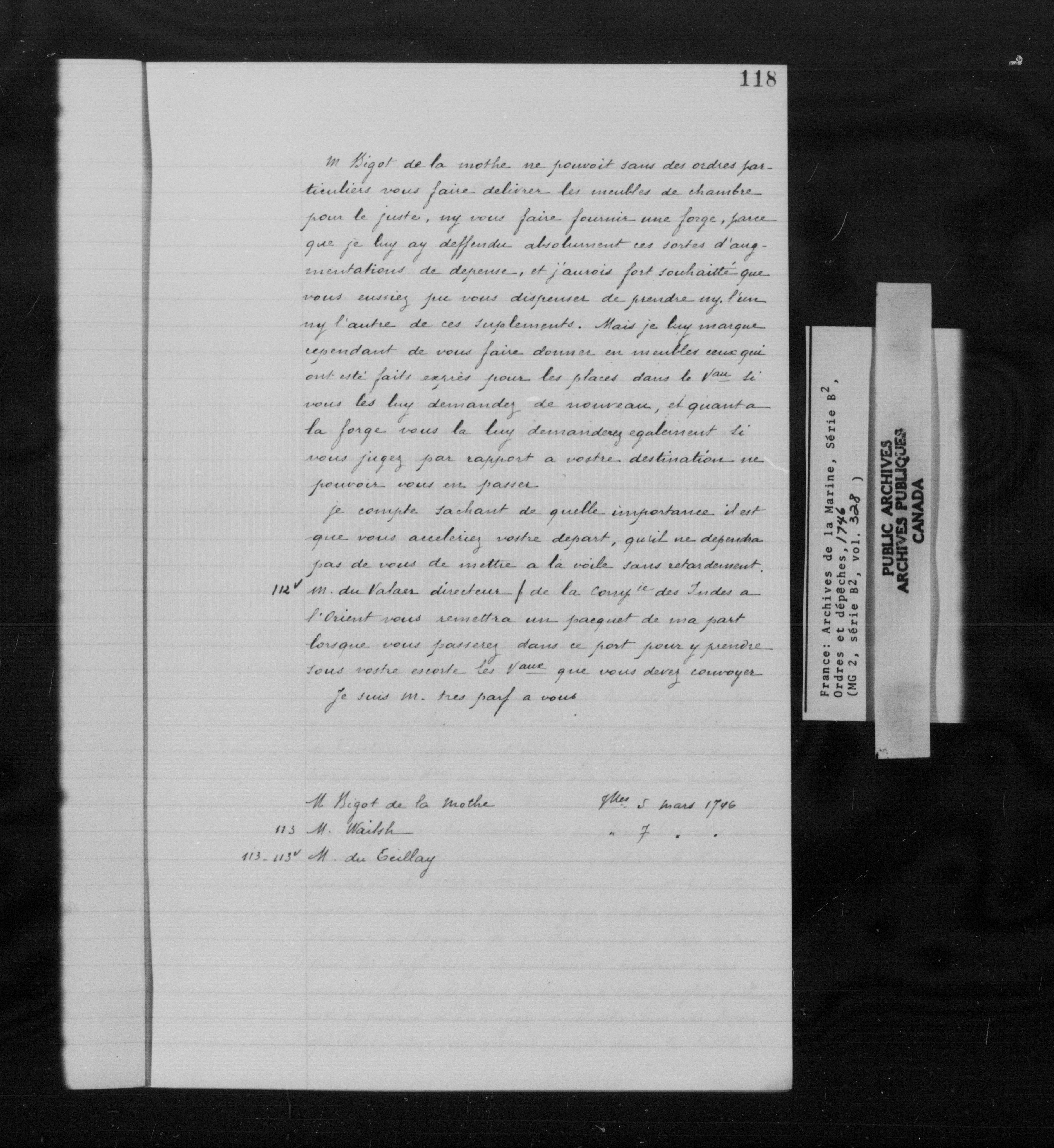 France. Archives de la Marine. Fonds de la Marine : Série B2, Ordres et dépêches : C-11989