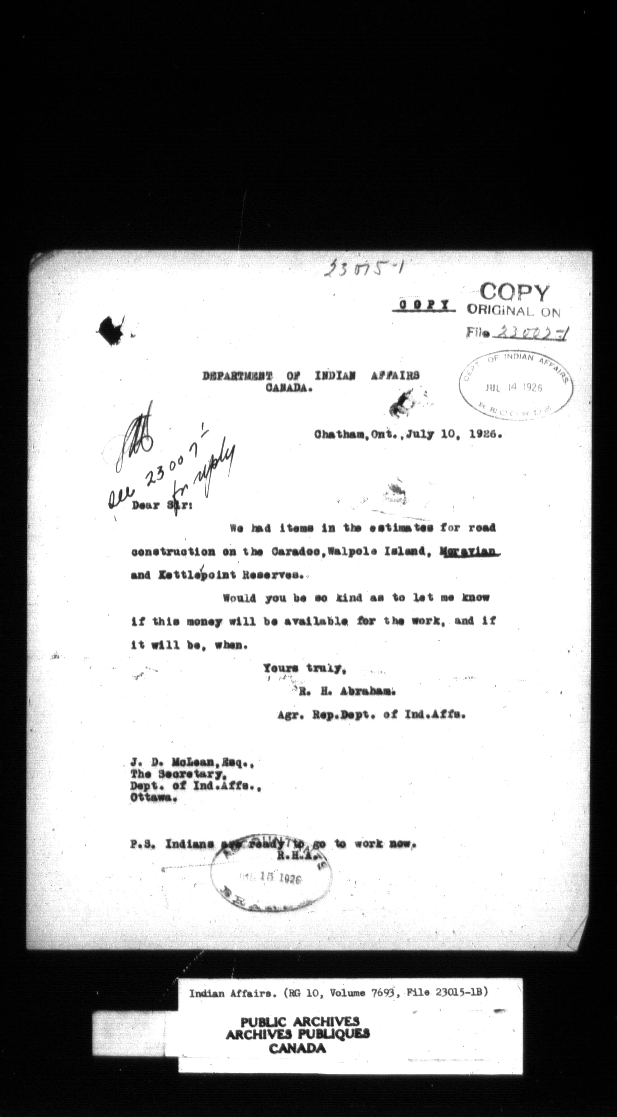 Department of Indian Affairs, Headquarters central registry system : thousand series - C-12007