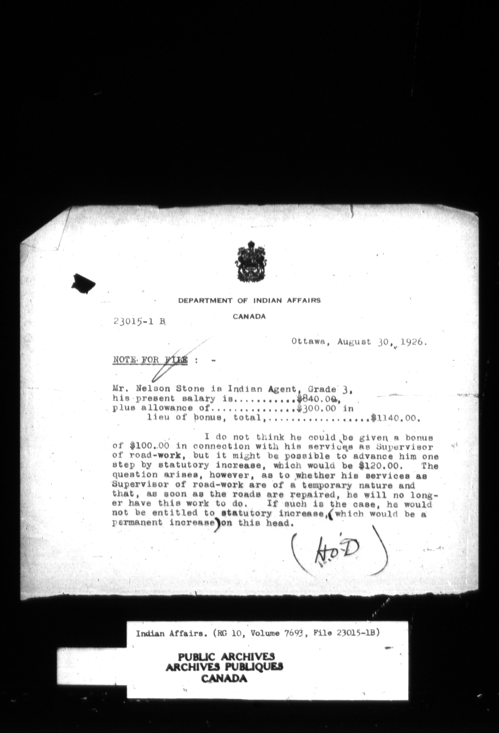 Department of Indian Affairs, Headquarters central registry system : thousand series - C-12007