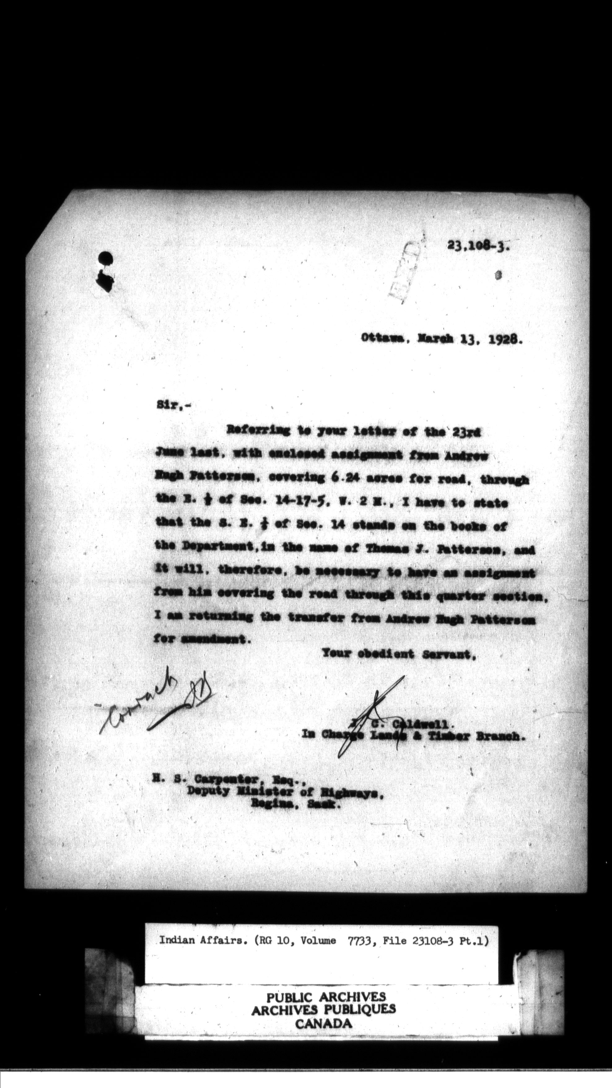 Department of Indian Affairs, Headquarters central registry system : thousand series : volume 7733, File 23108-3 to vol. 7734, File 23114-3 - 12034