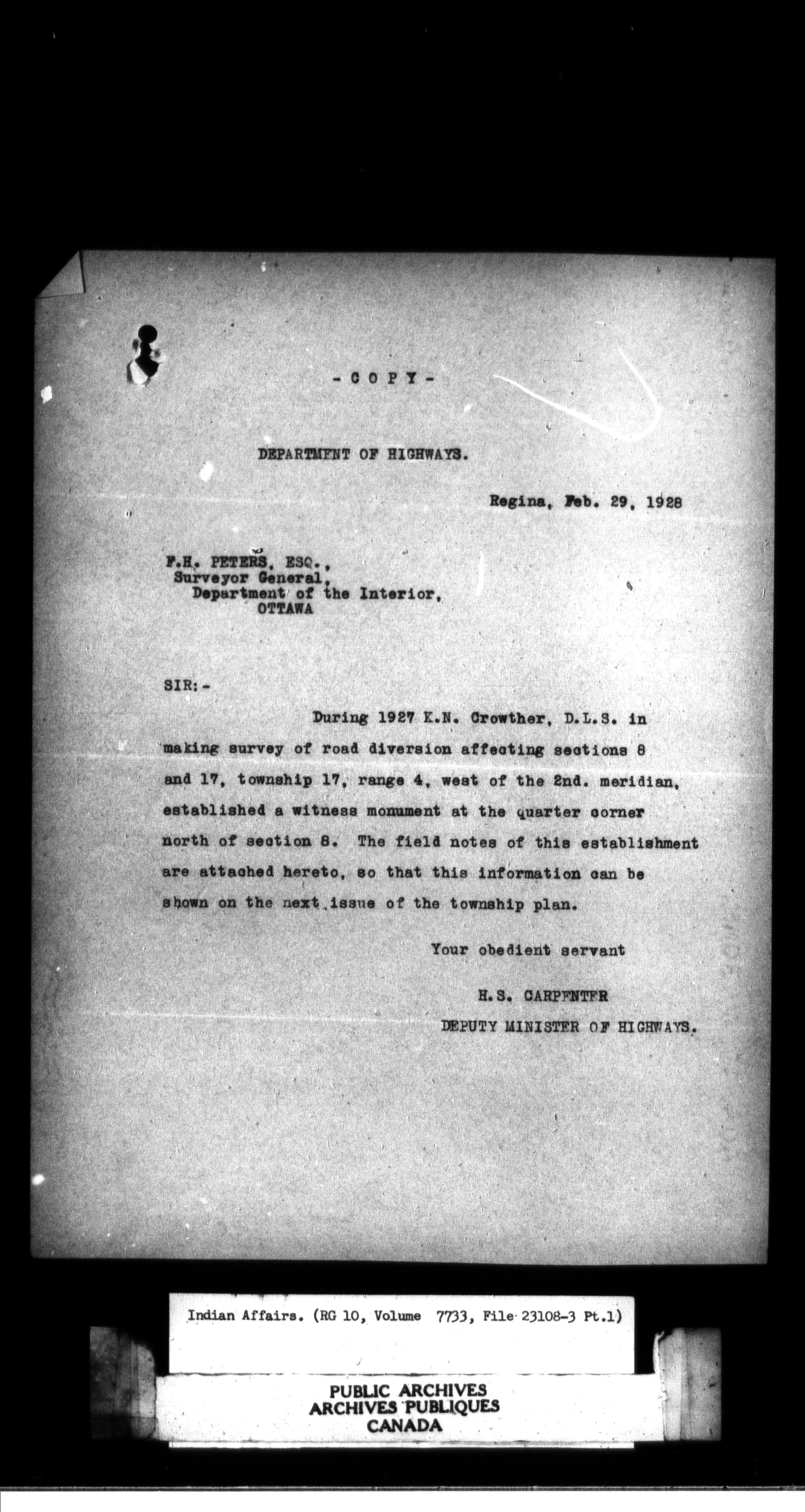 Department of Indian Affairs, Headquarters central registry system : thousand series : volume 7733, File 23108-3 to vol. 7734, File 23114-3 - 12034