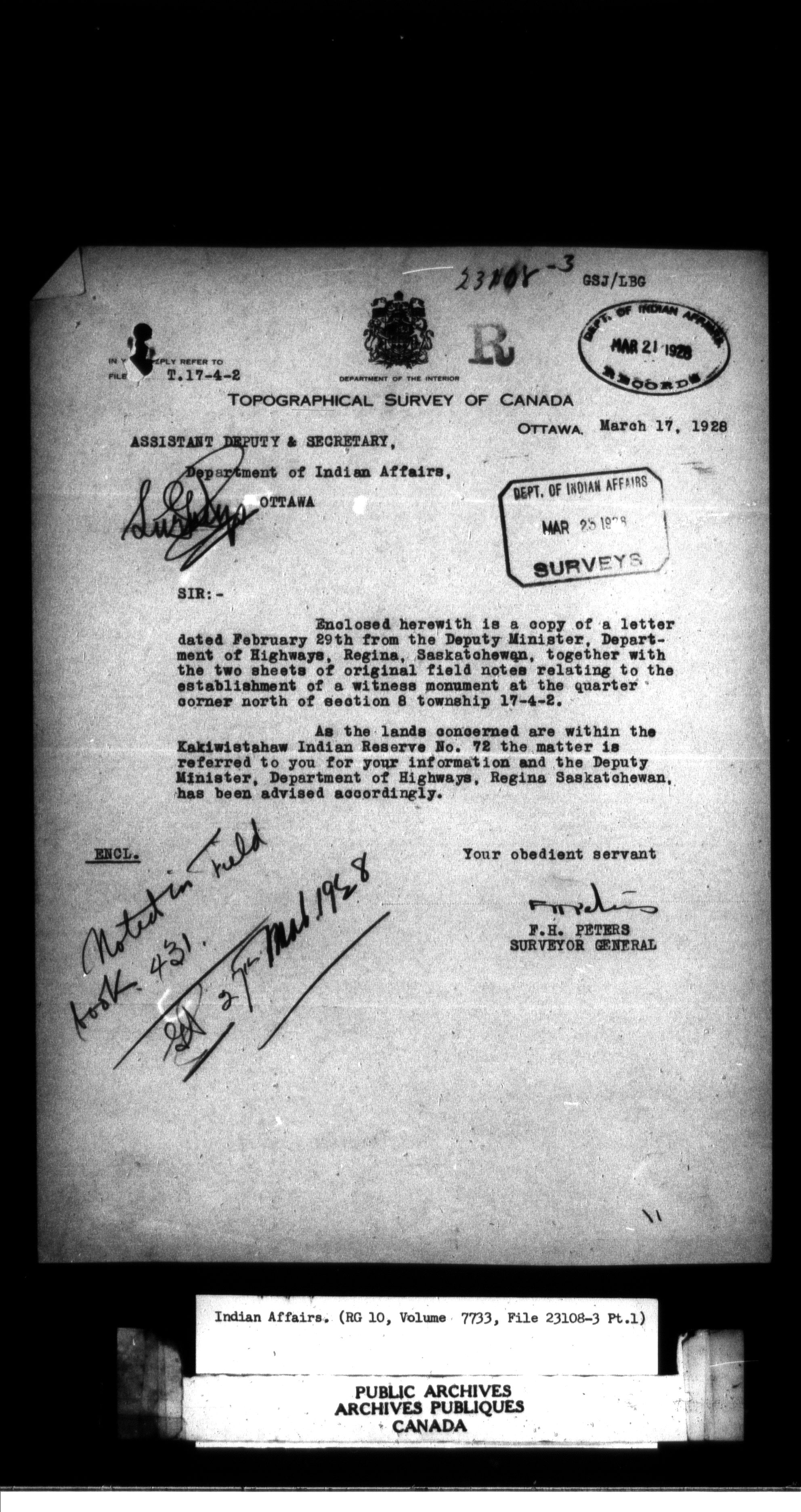 Department of Indian Affairs, Headquarters central registry system : thousand series : volume 7733, File 23108-3 to vol. 7734, File 23114-3 - 12034