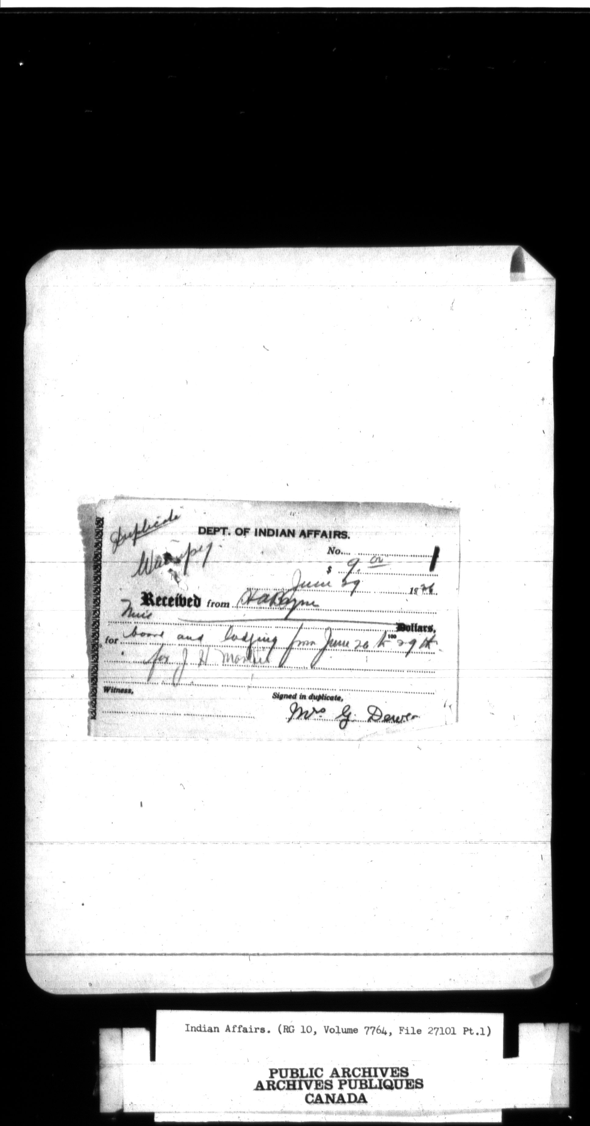 Department of Indian Affairs, Headquarters central registry system : thousand series (Vol. 7764, File 27101 to Vol. 7766, File 27107-3, pt. 1) - 12053