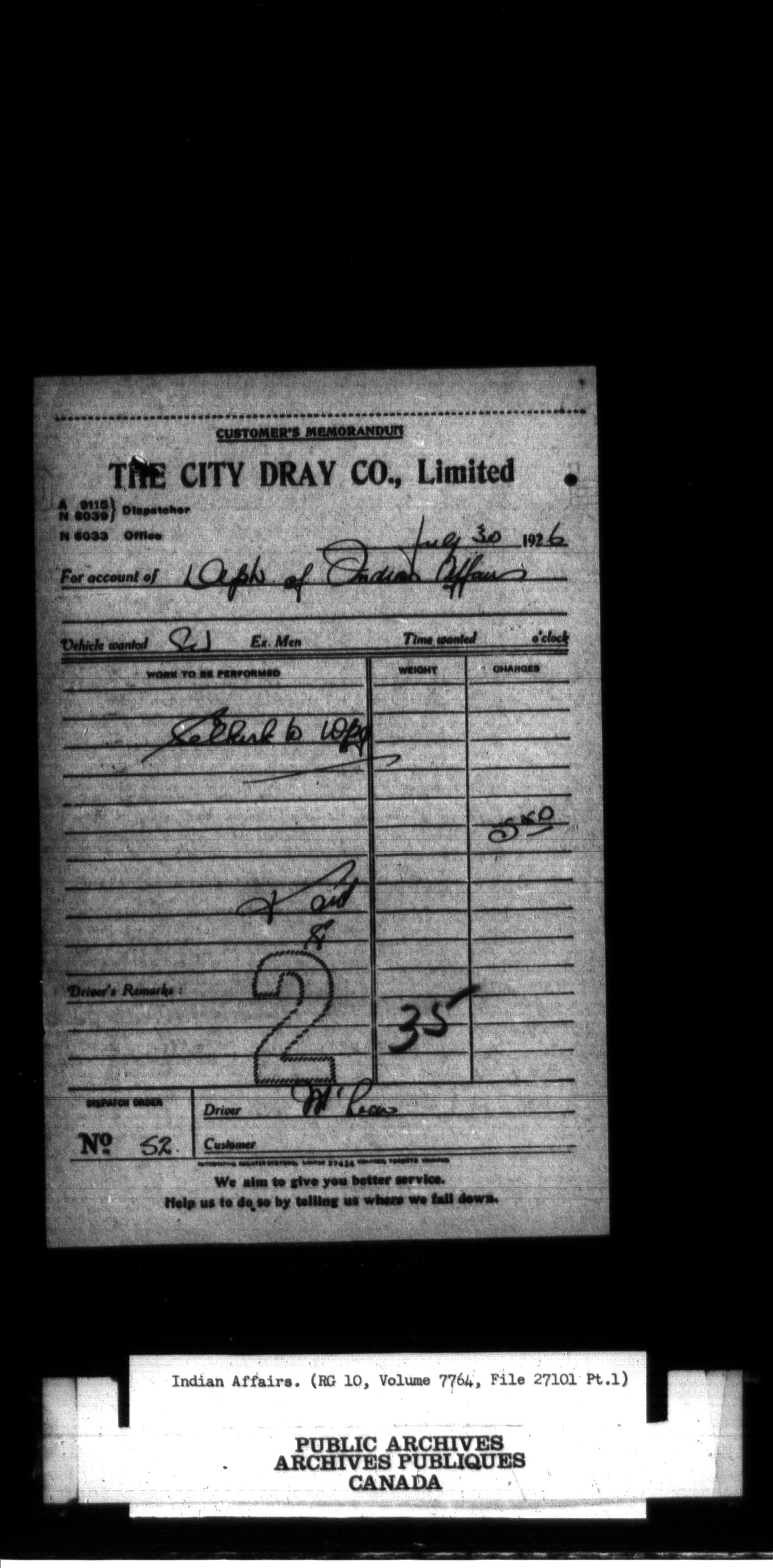 Department of Indian Affairs, Headquarters central registry system : thousand series (Vol. 7764, File 27101 to Vol. 7766, File 27107-3, pt. 1) - 12053