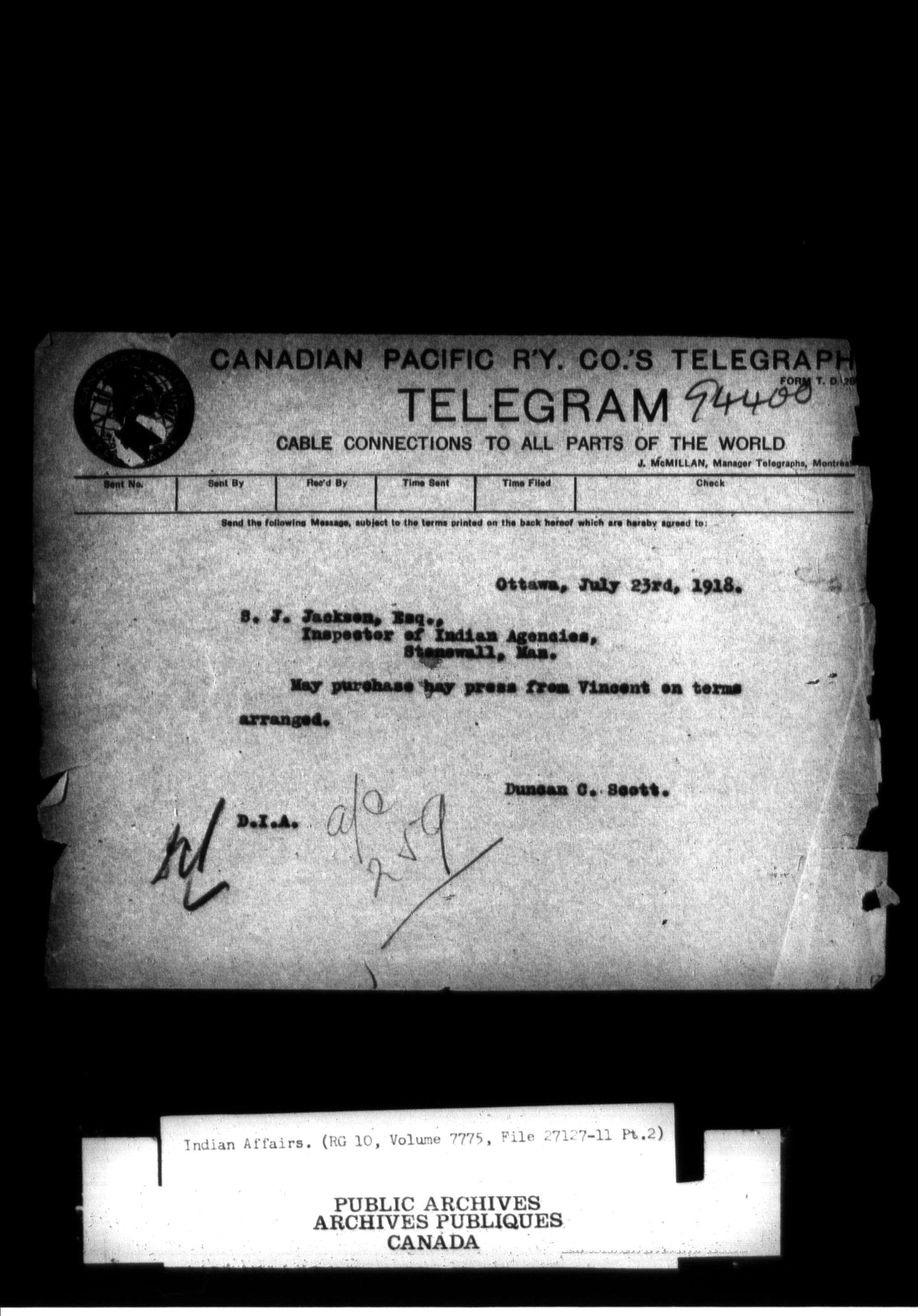 Department of Indian Affairs, Headquarters central registry system : thousand series : C-12059