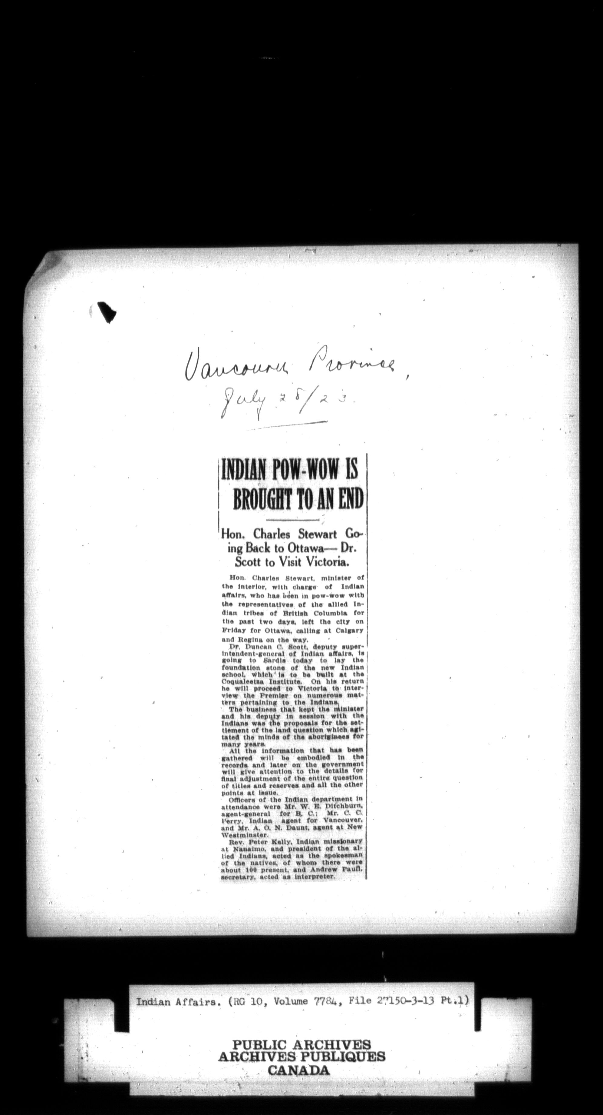 Royal Commission on Indians Affairs for the Province of British Columbia