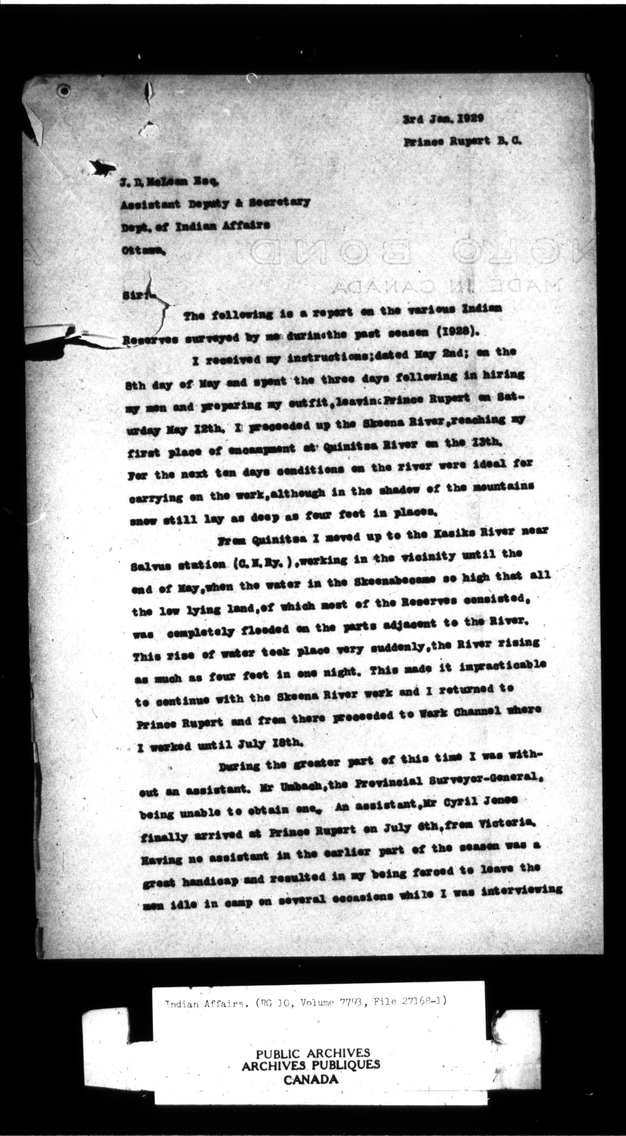 Department of Indian Affairs, Headquarters central registry system : thousand series : C-12071