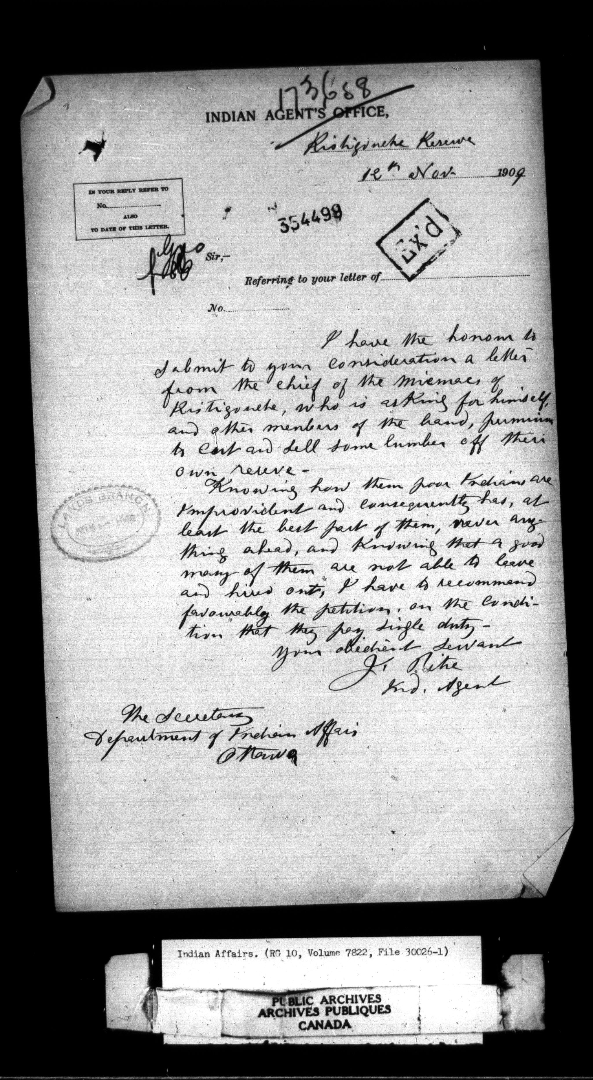 Department of Indian Affairs, Headquarters central registry system : thousand series - 12096