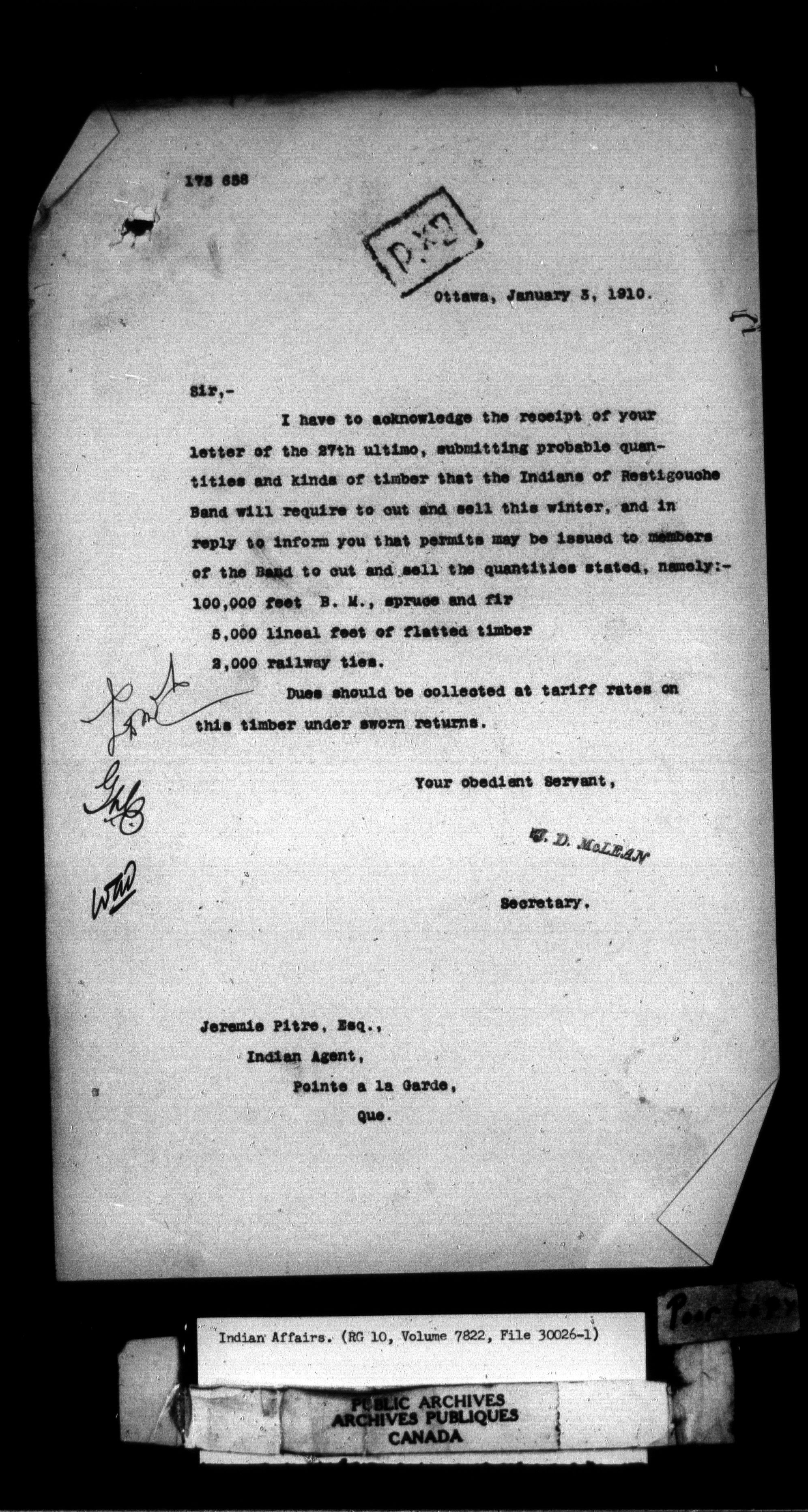 Department of Indian Affairs, Headquarters central registry system : thousand series : C-12096