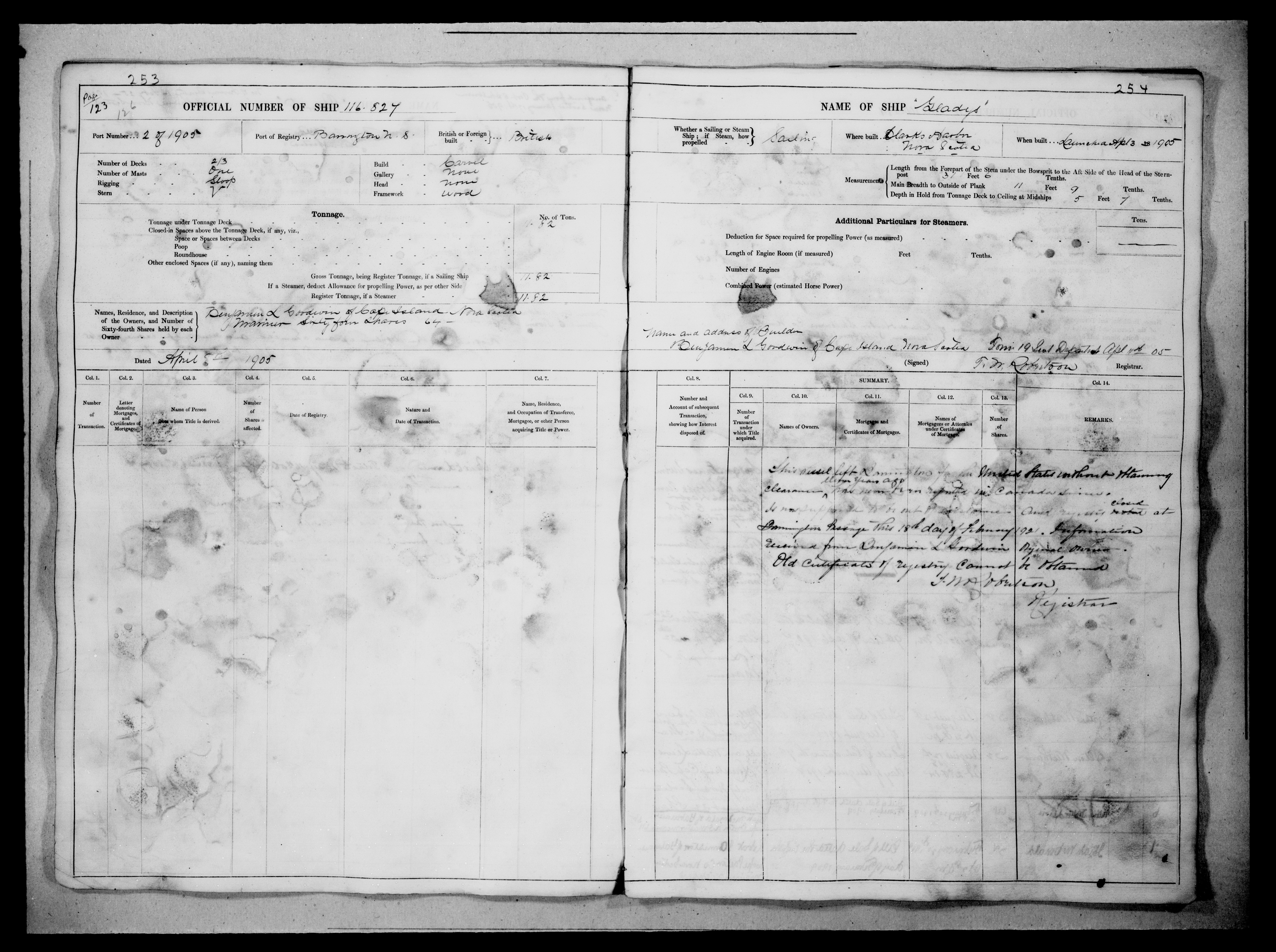 Barrington Passage [Nova Scotia] Registrar of Shipping, 1875-1984 : C-1210