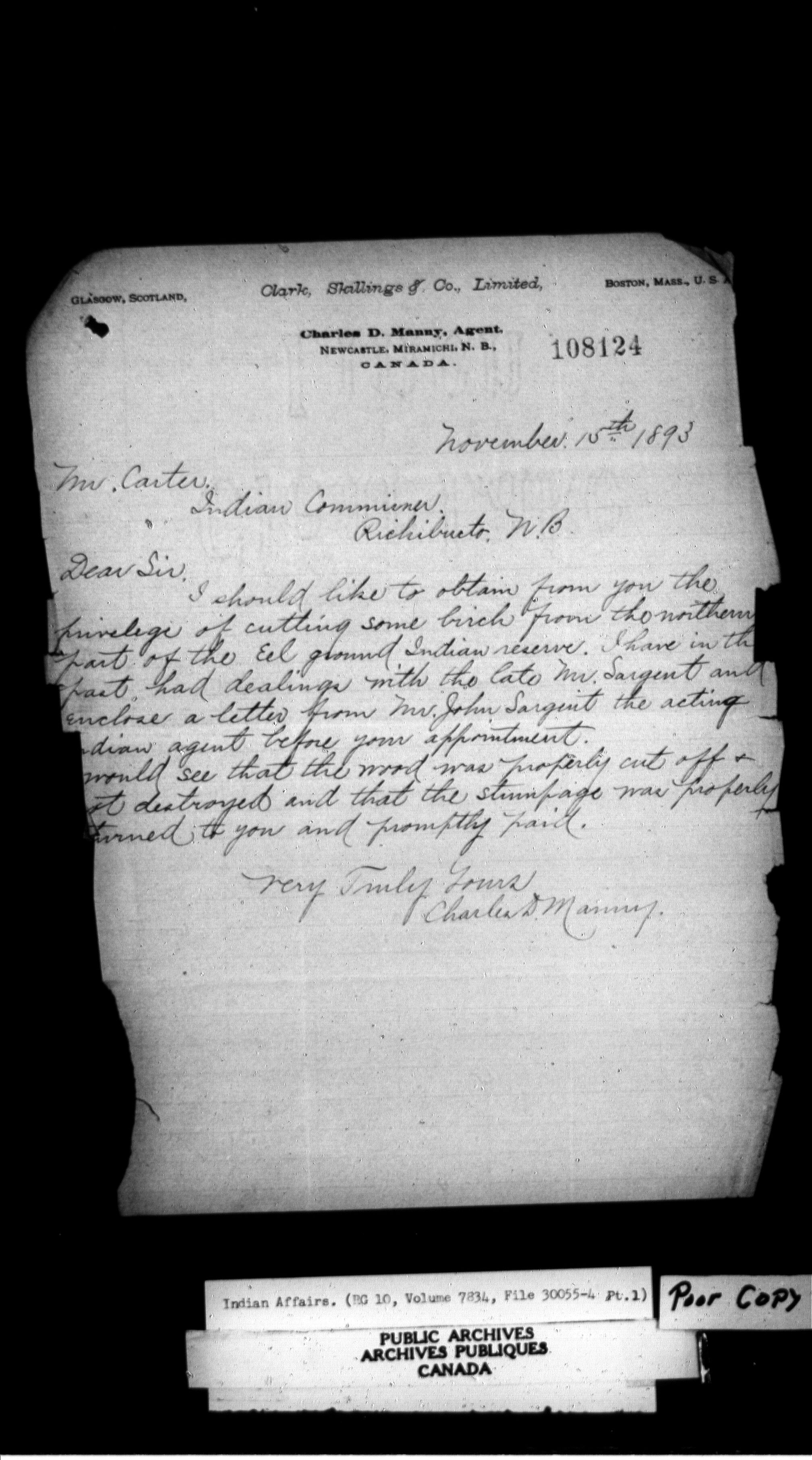 Department of Indian Affairs, Headquarters central registry system : thousand series : C-12107