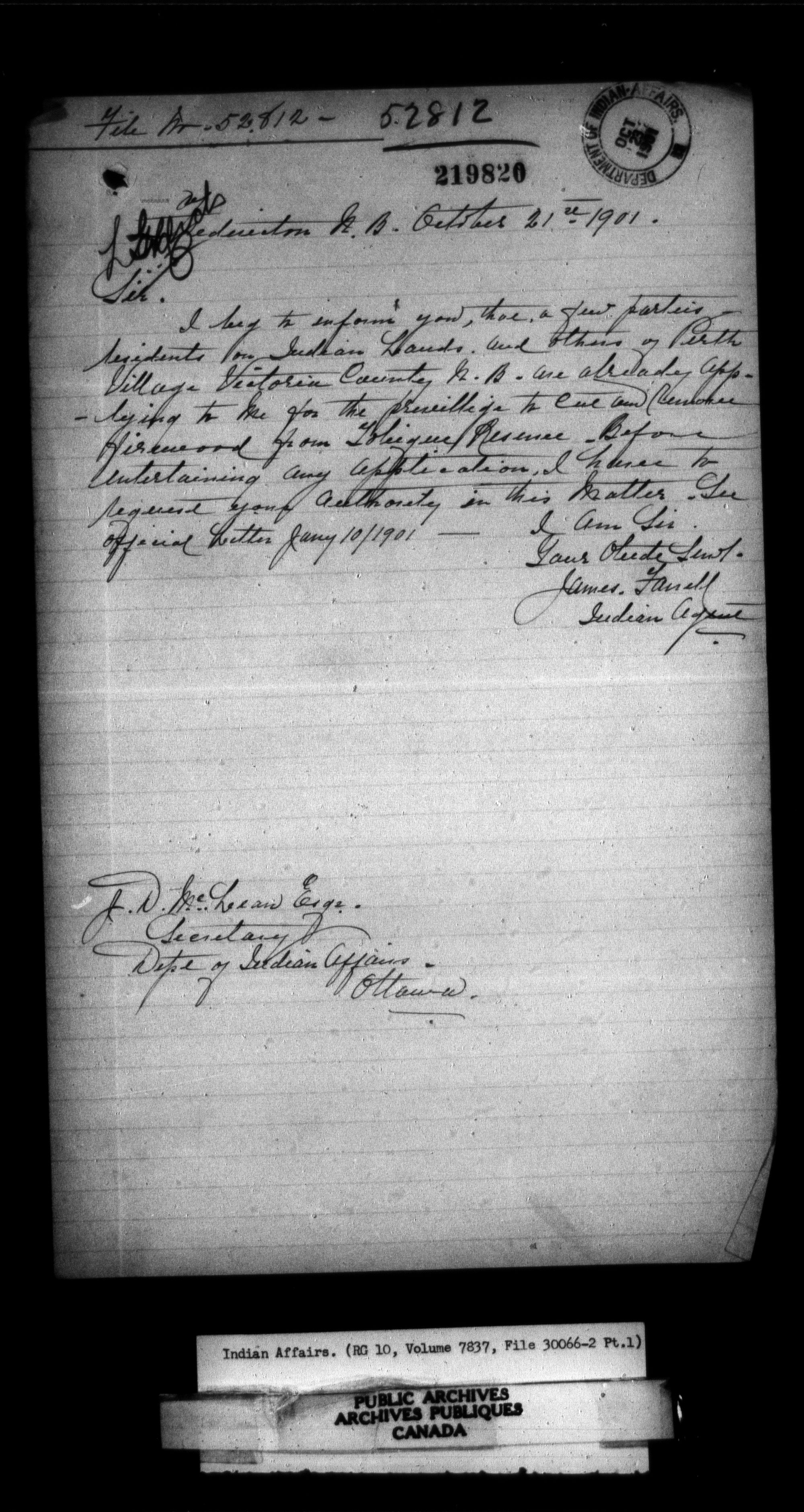 Department of Indian Affairs, Headquarters central registry system : thousand series : C-12110