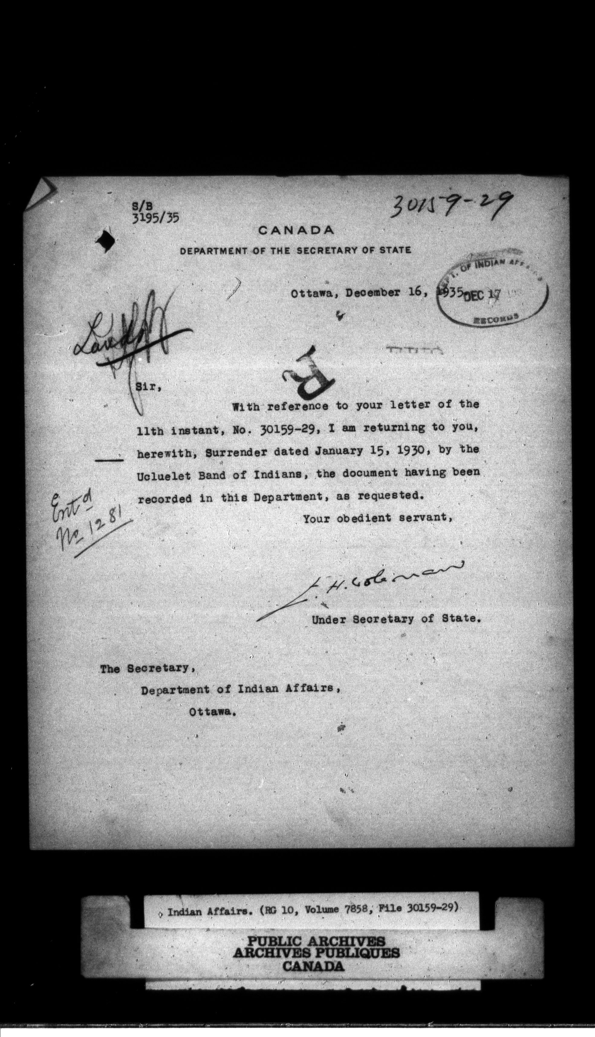 Department of Indian Affairs, Headquarters central registry system : thousand series - 12123