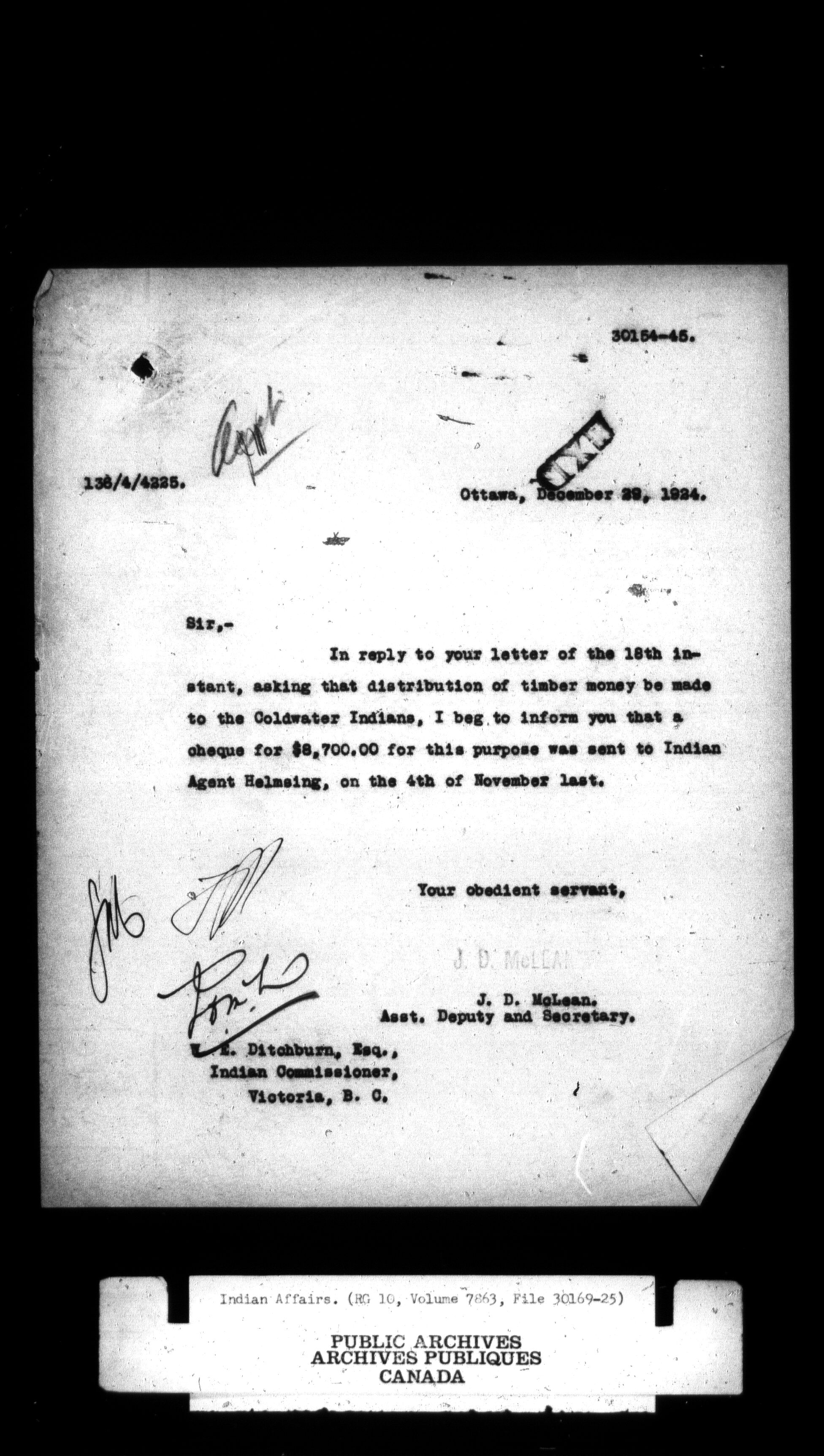 Nicola Agency - Correspondence and statistics regarding timber on Coldwater Reserves #1 and 2