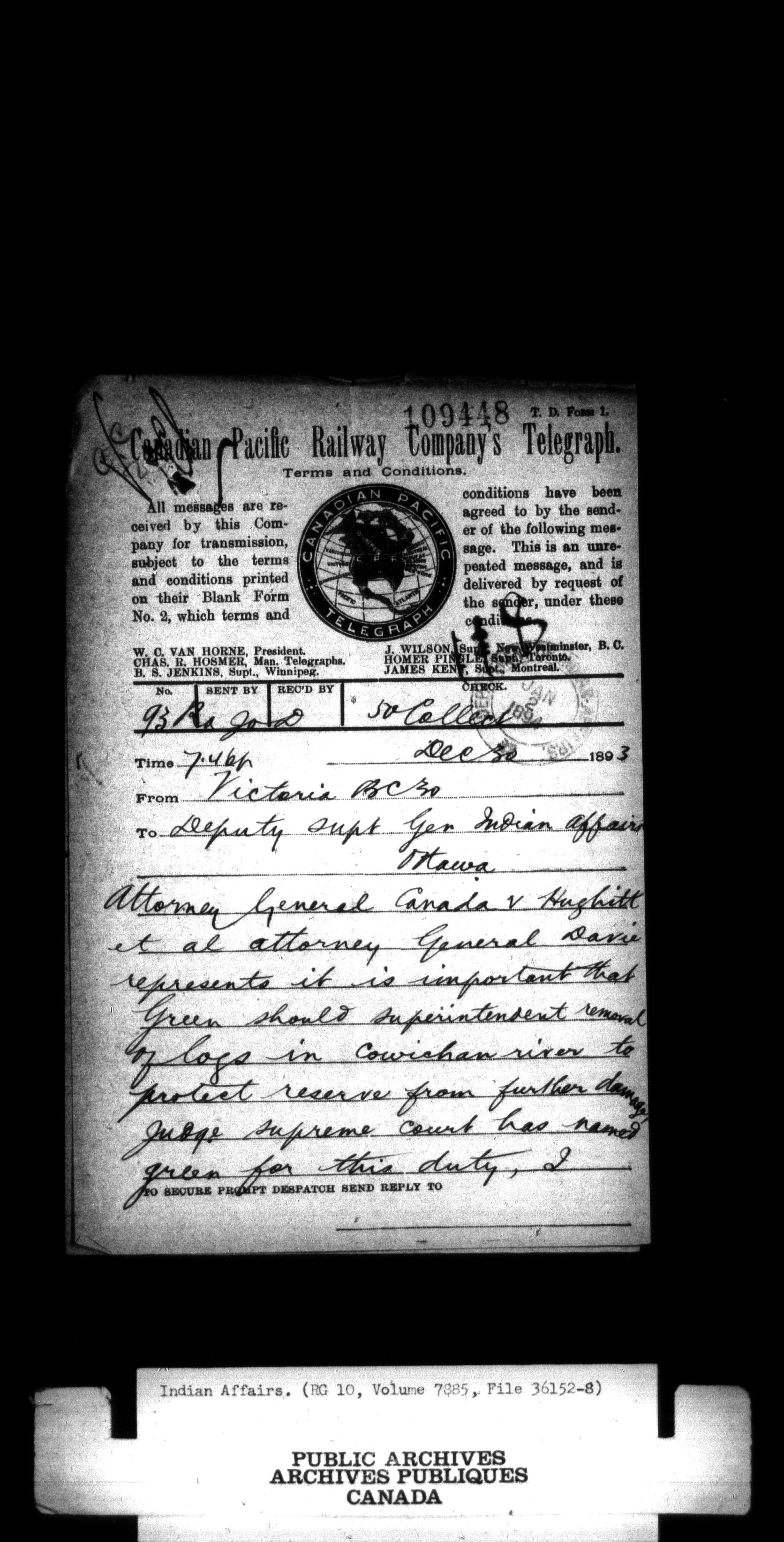 Department of Indian Affairs, Headquarters central registry system : thousand series - 12134