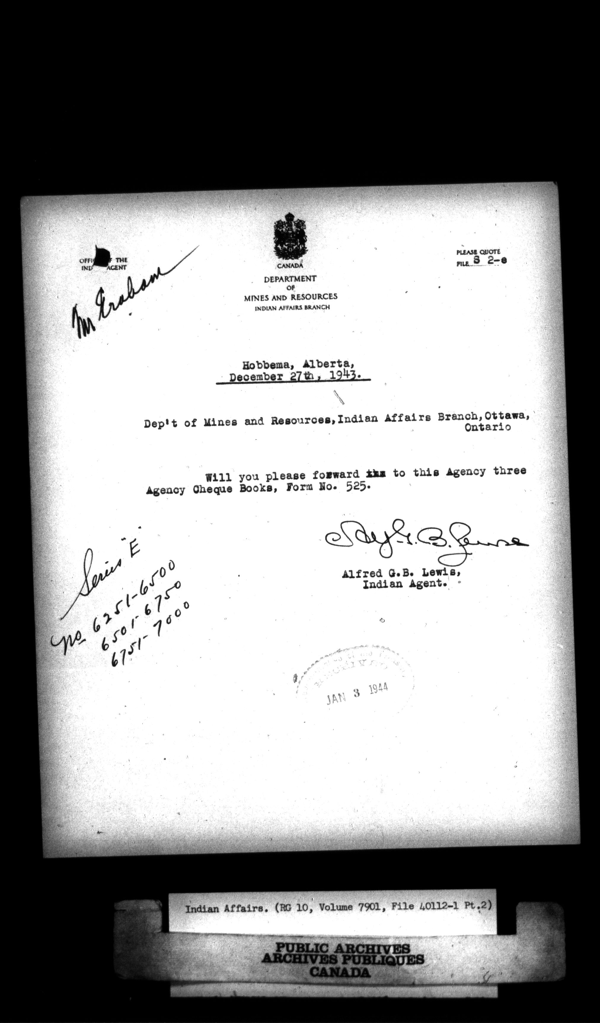Department of Indian Affairs, Headquarters central registry system : thousand series : C-12141