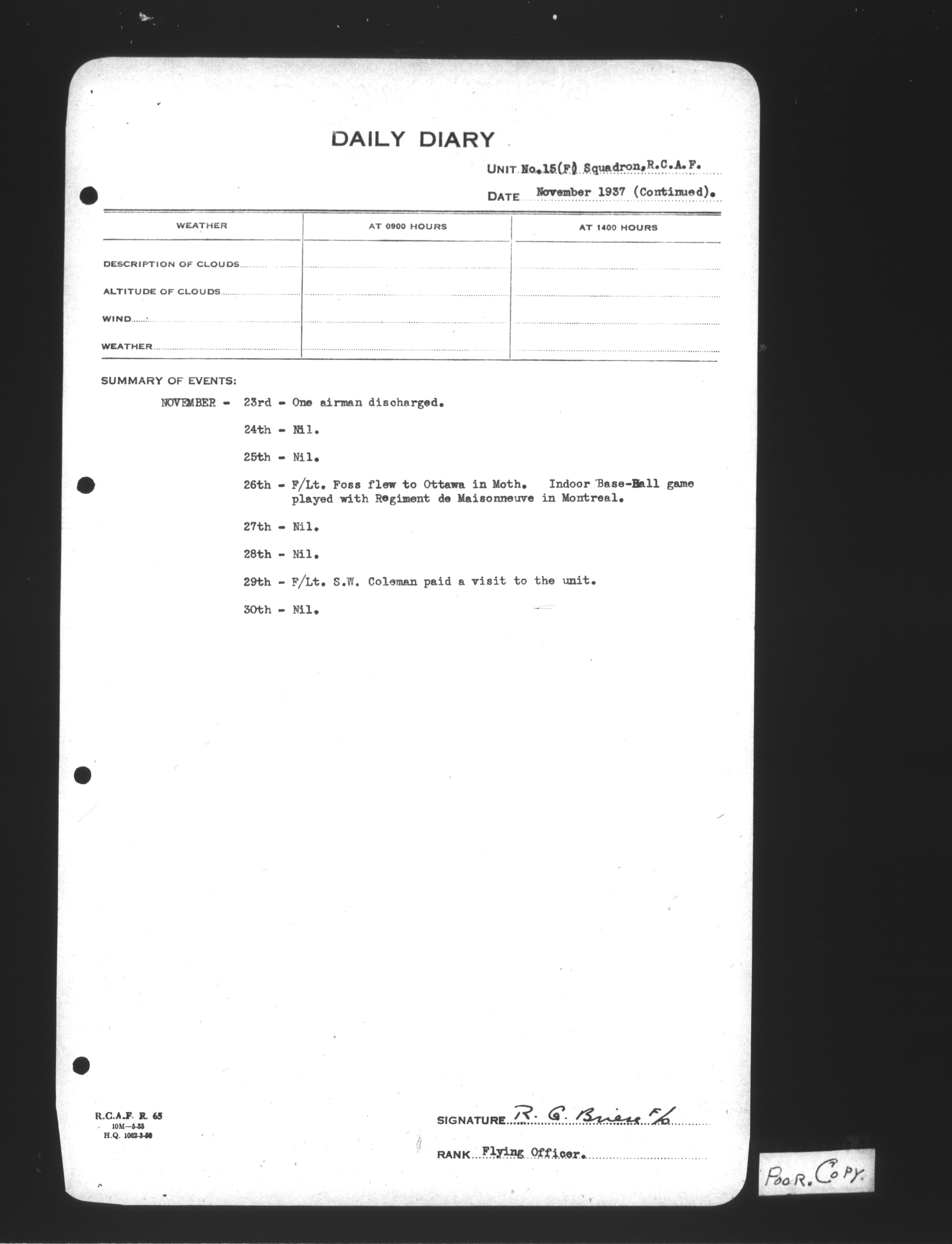 Royal Canadian Air Force operations record books : C-12244