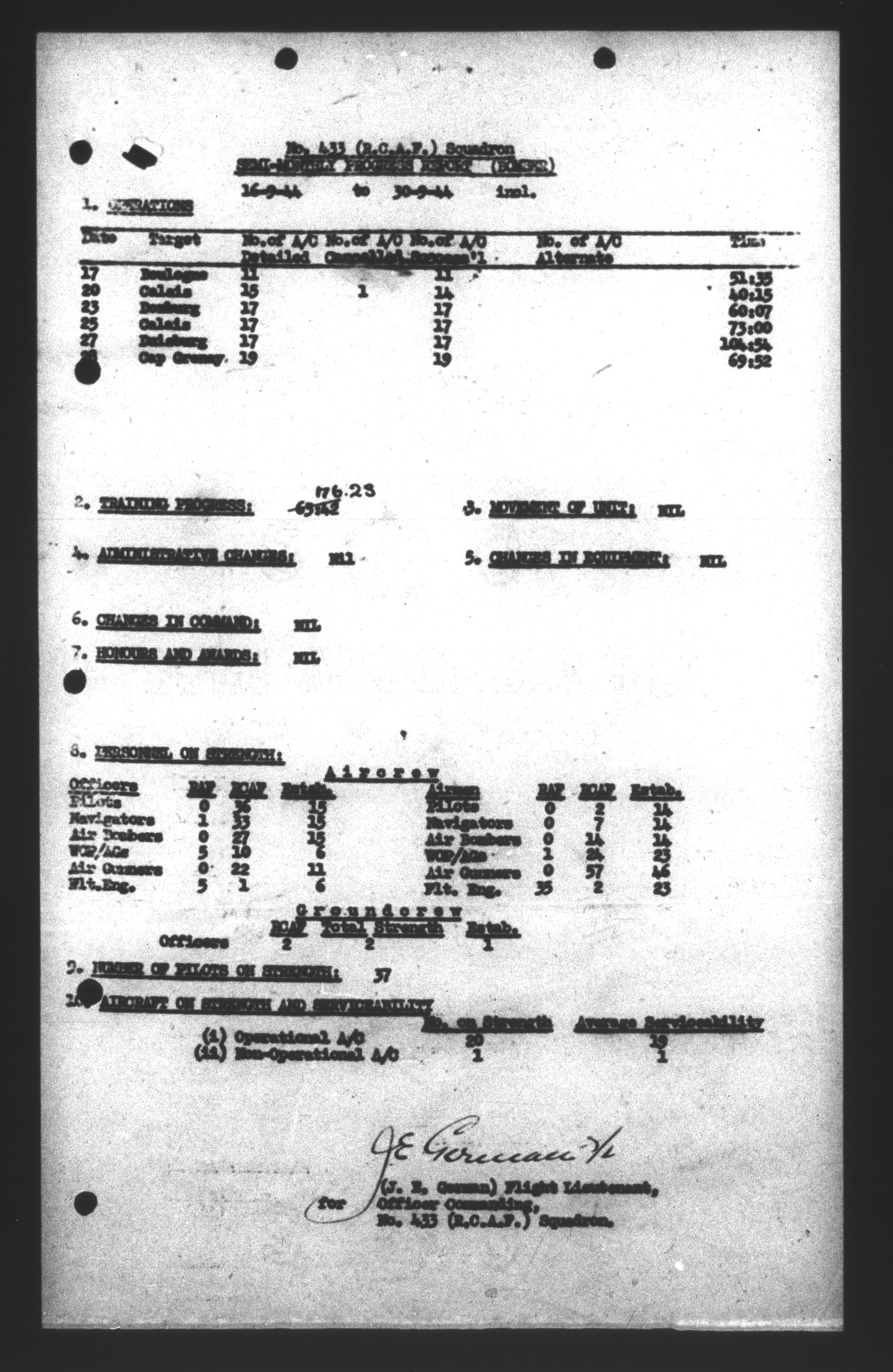 Royal Canadian Air Force operations record books : No. 433 Bomber Squadron (R.C.A.F.) - 12309