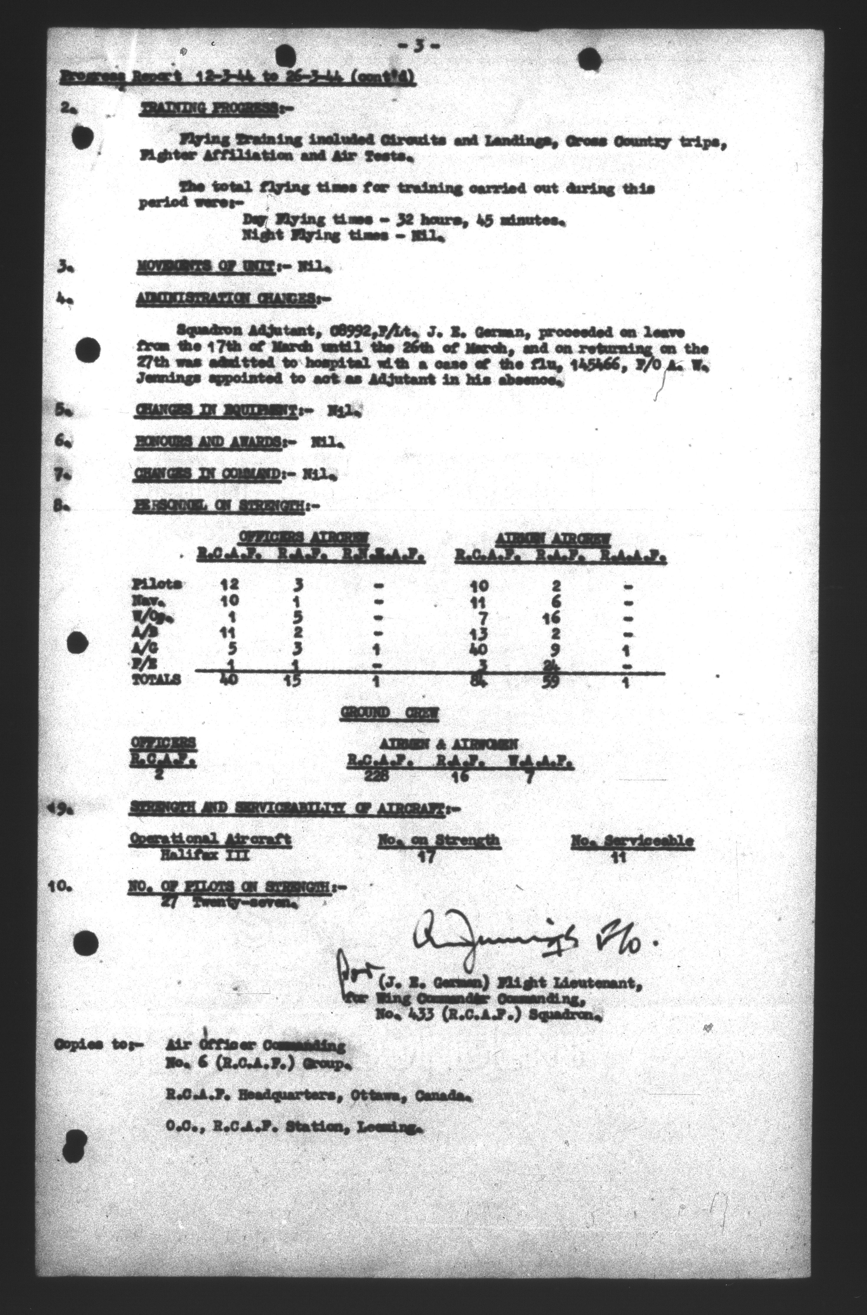 Royal Canadian Air Force operations record books : No. 433 Bomber Squadron (R.C.A.F.) - 12309
