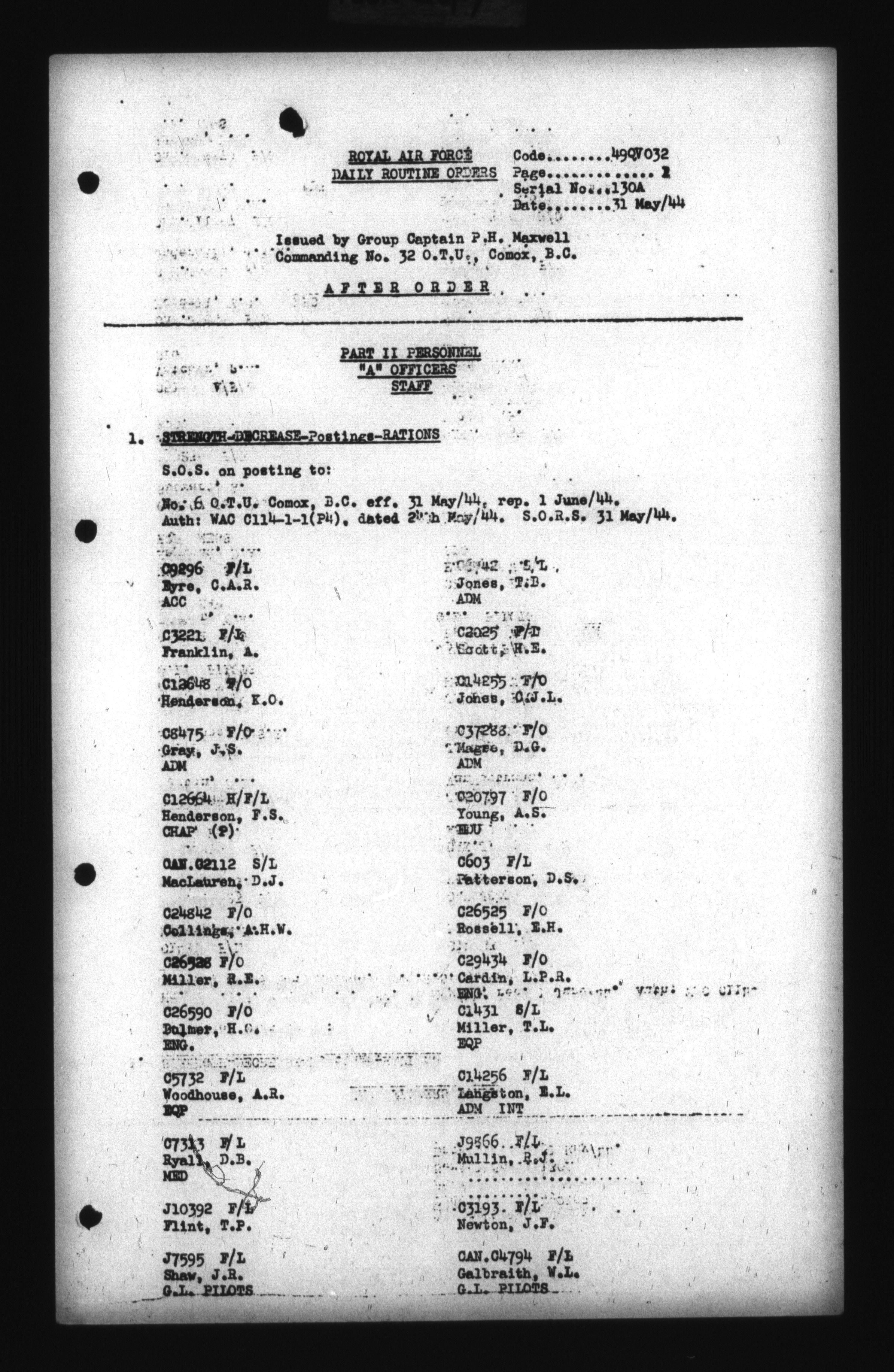 Royal Canadian Air Force operations record books for the Operation Training Unit - 12361