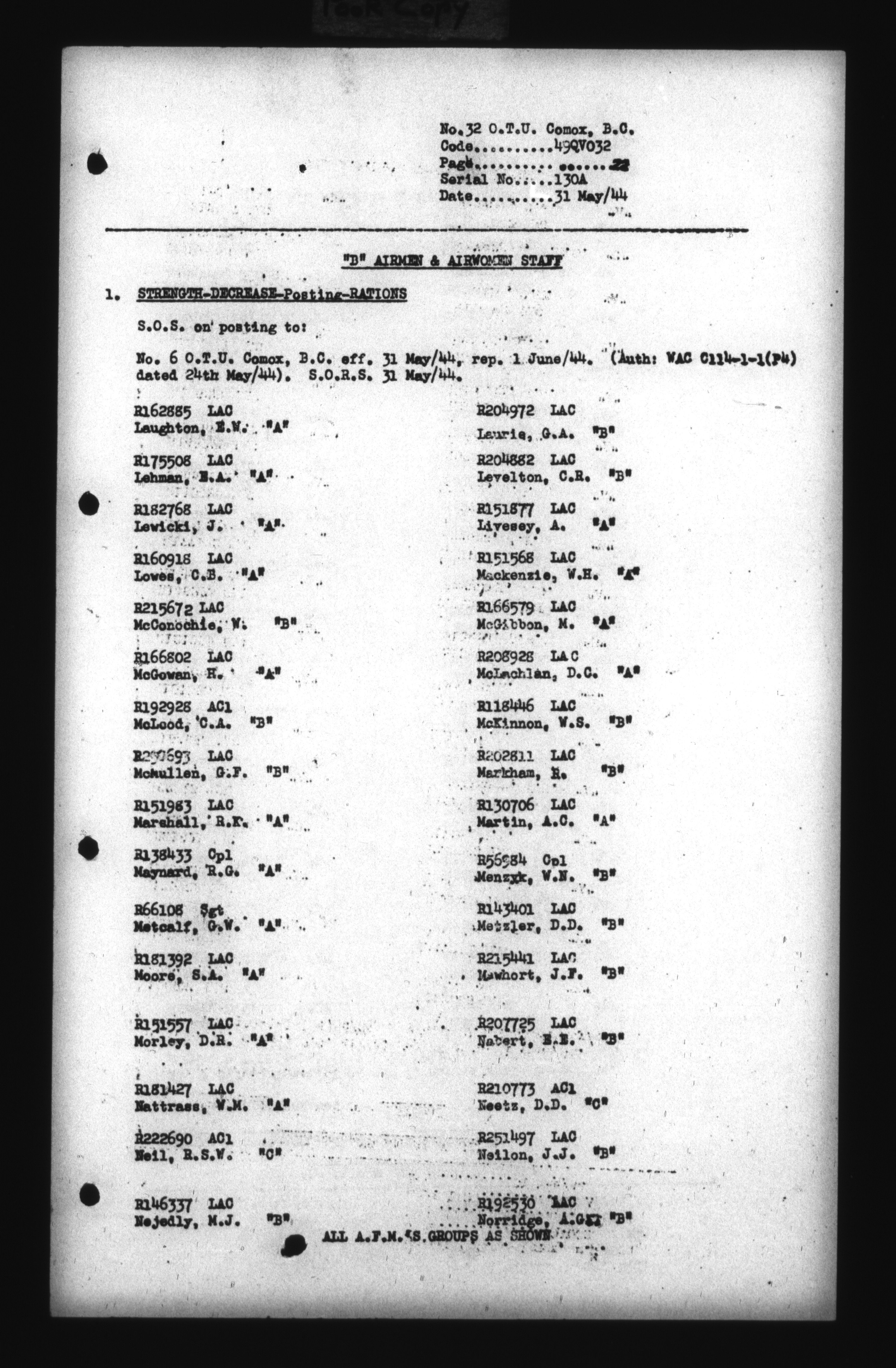 Royal Canadian Air Force operations record books for the Operation Training Unit - 12361