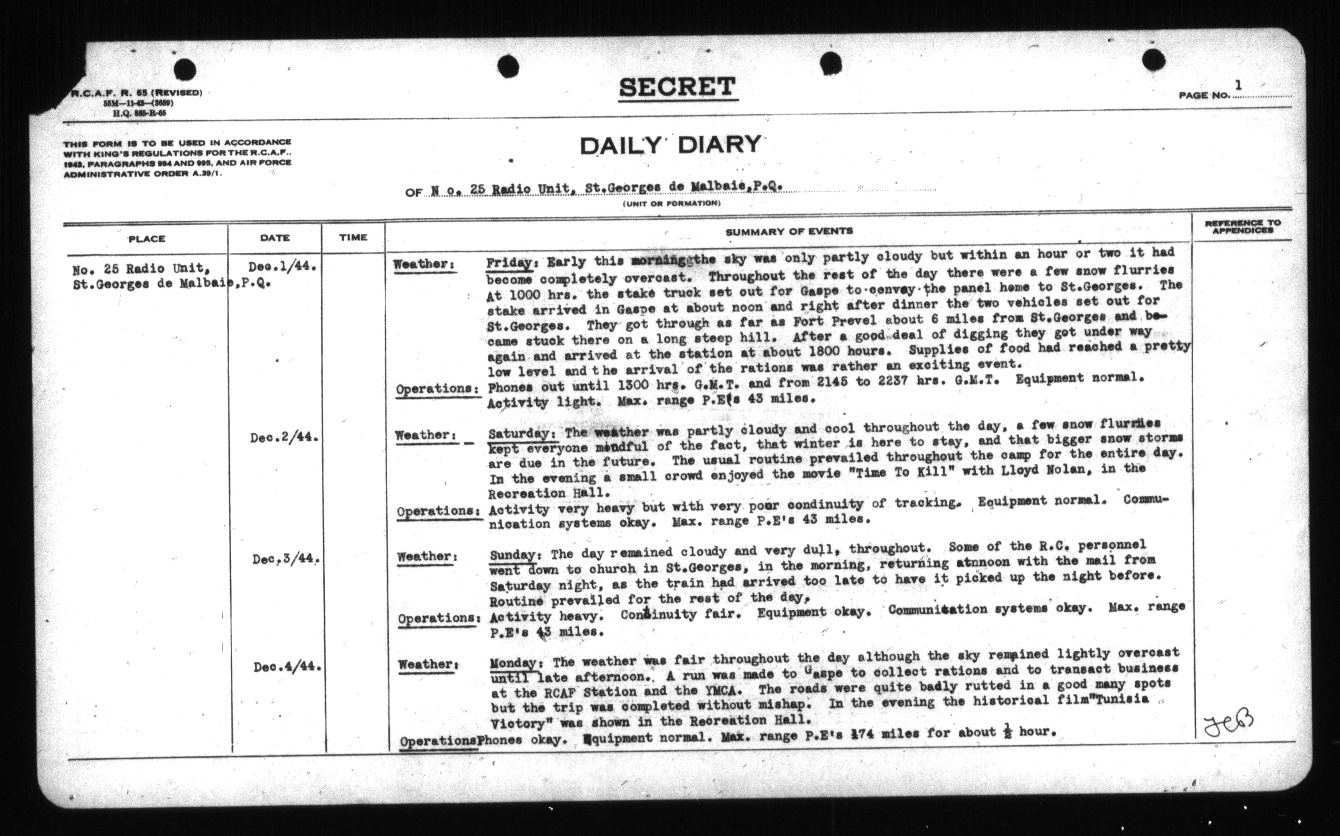 Royal Canadian Air Force operations record books, Radio books Units 6 to 10 - 12384