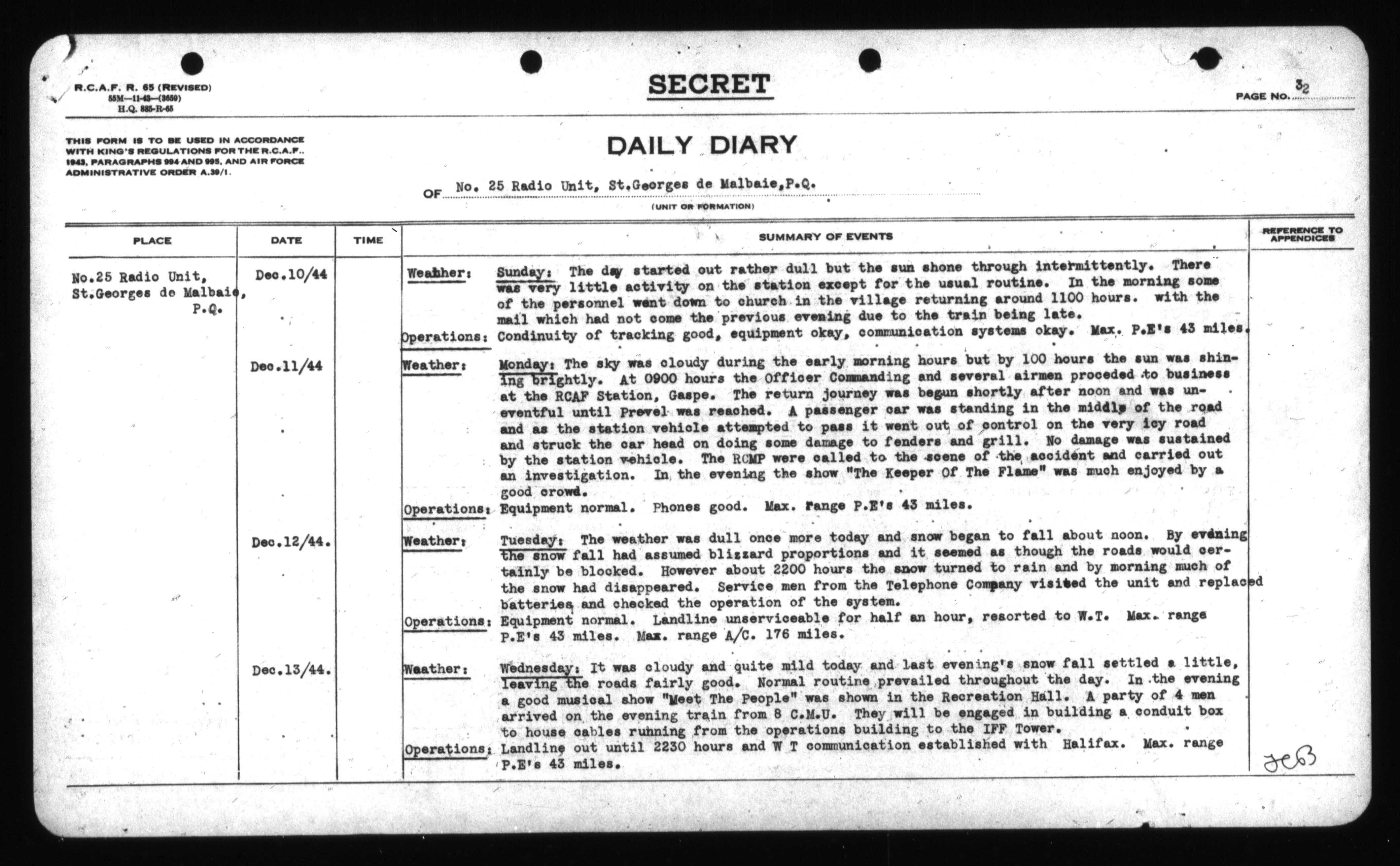 Royal Canadian Air Force operations record books, Radio books Units 6 to 10 - 12384