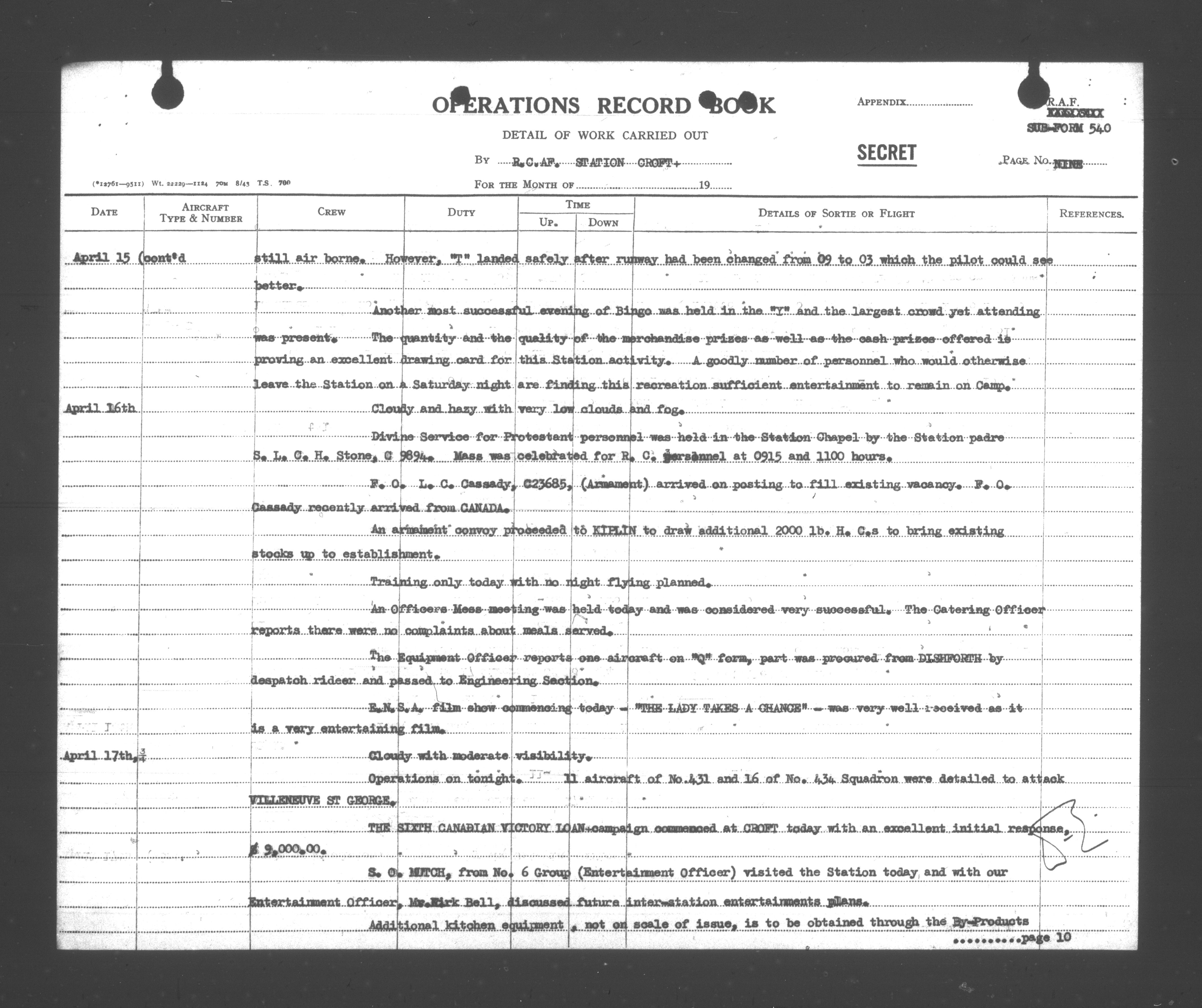 Royal Canadian Air Force operations record books - 12423
