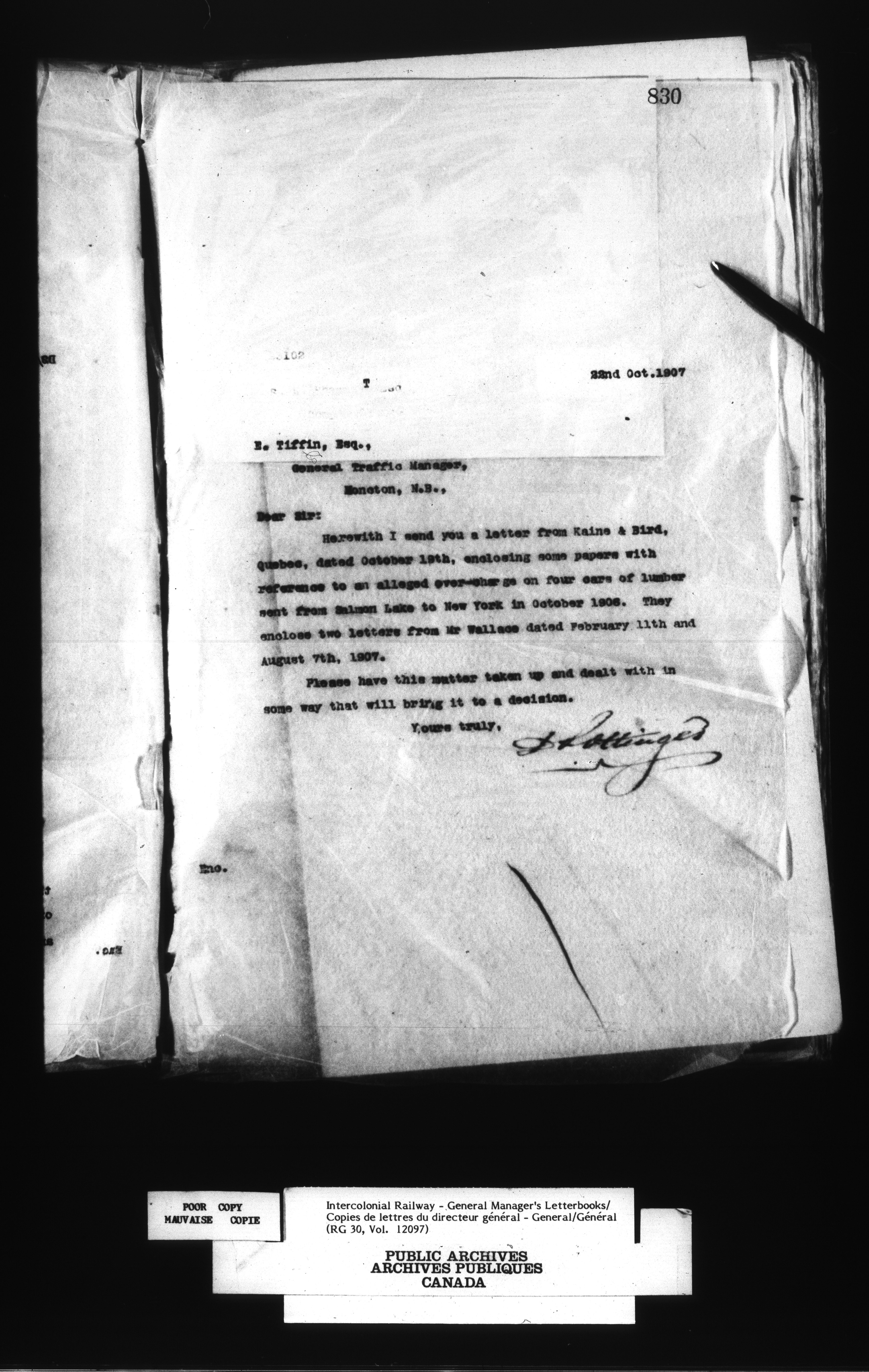 Canadian Government Railways : Office of the General Manager, Outward correspondence - 12438