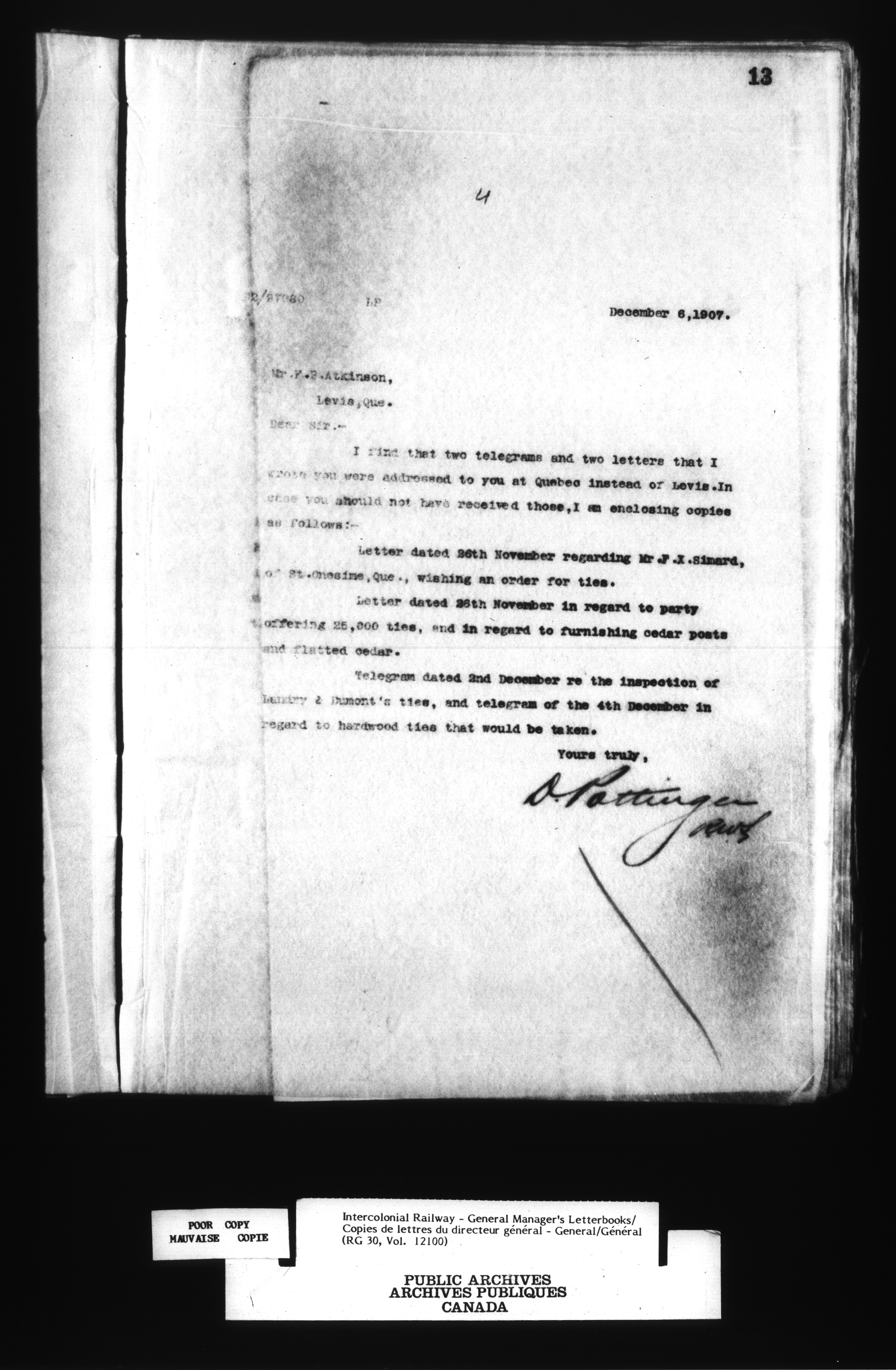 Canadian Government Railways : Office of the General Manager, Outward correspondence - 12439