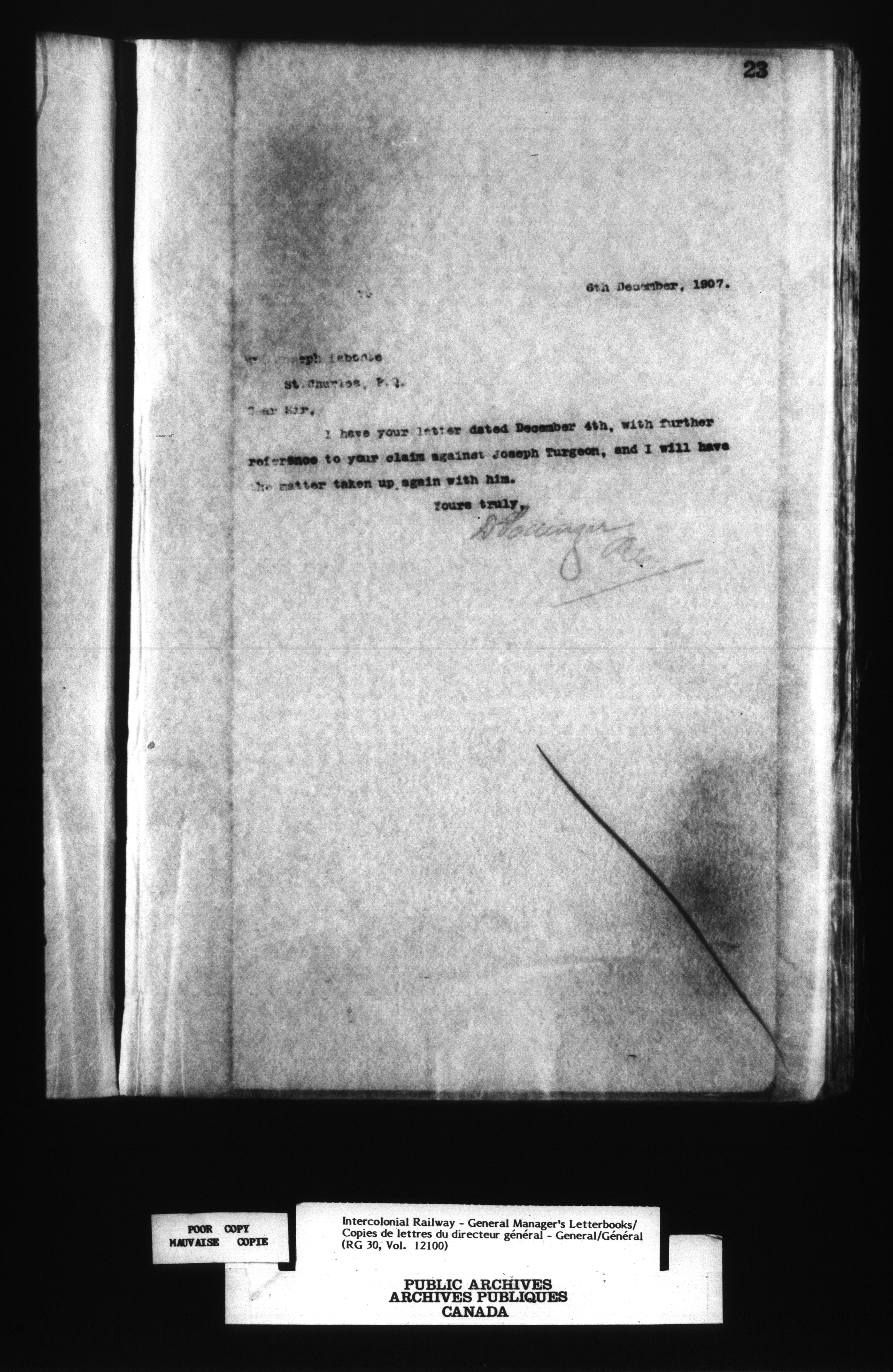 Canadian Government Railways : Office of the General Manager, Outward correspondence - 12439