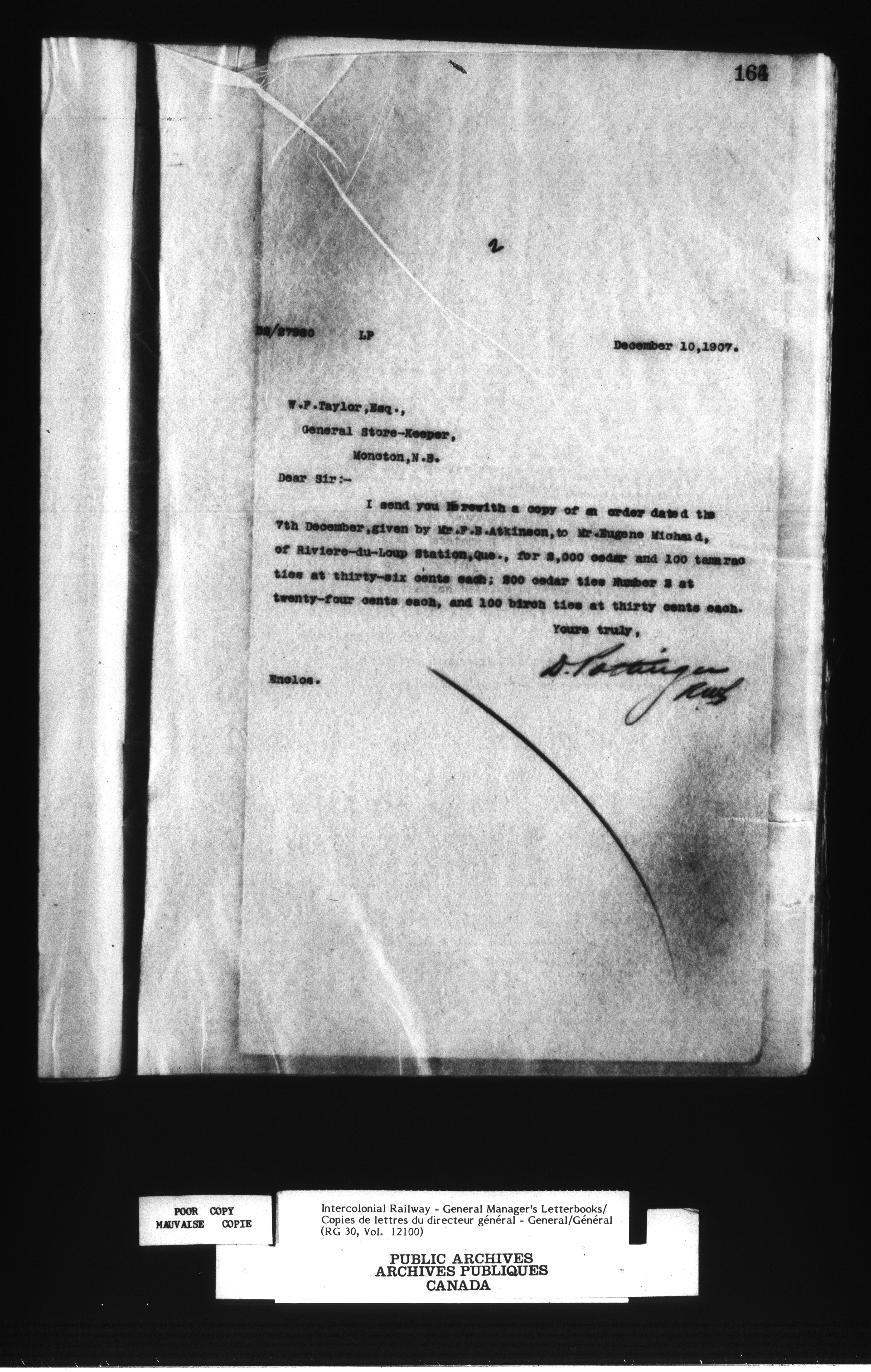 Canadian Government Railways : Office of the Chief Superintendent, Outward correspondence : C-12440