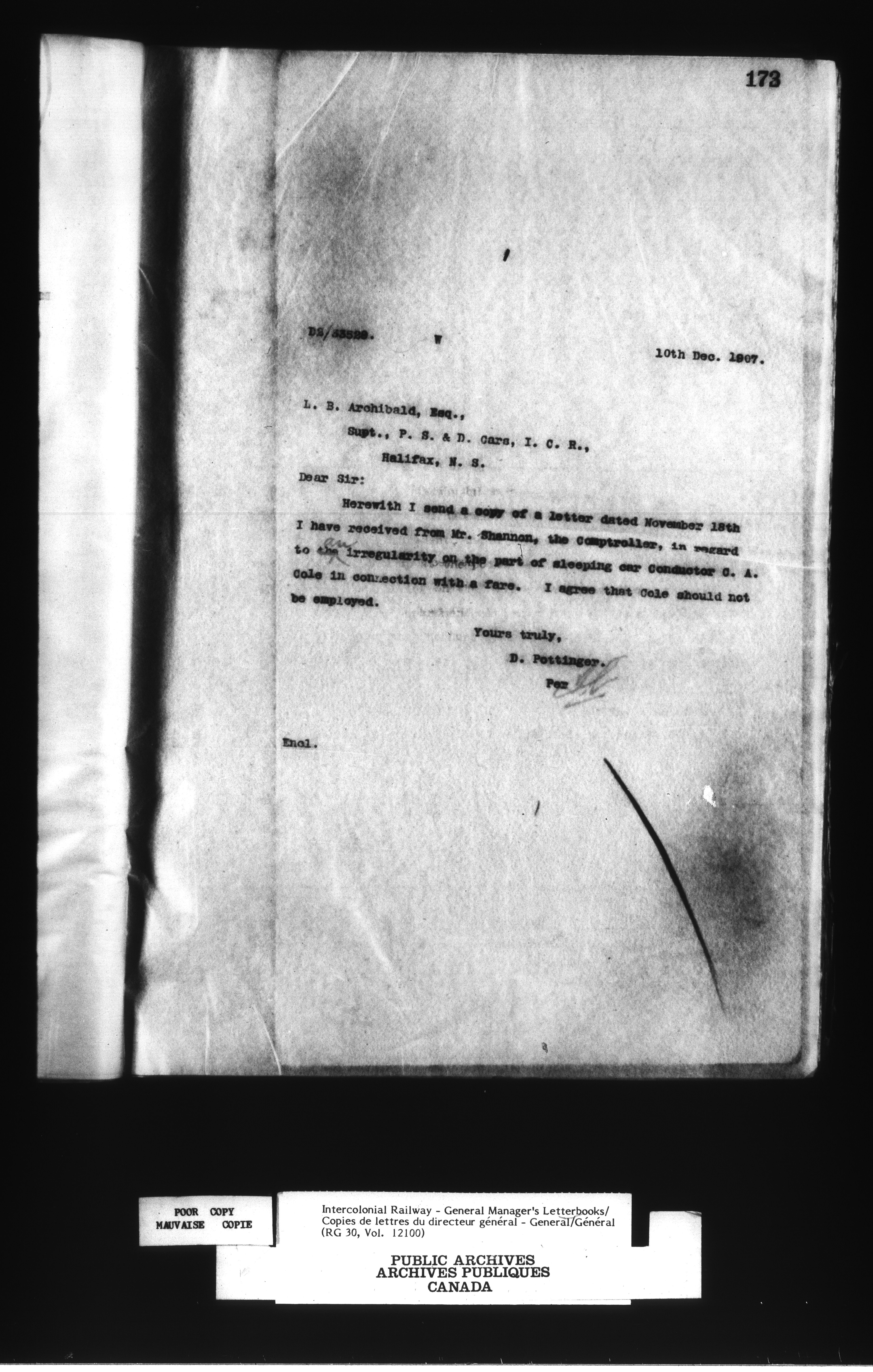 Canadian Government Railways : Office of the Chief Superintendent, Outward correspondence : C-12440