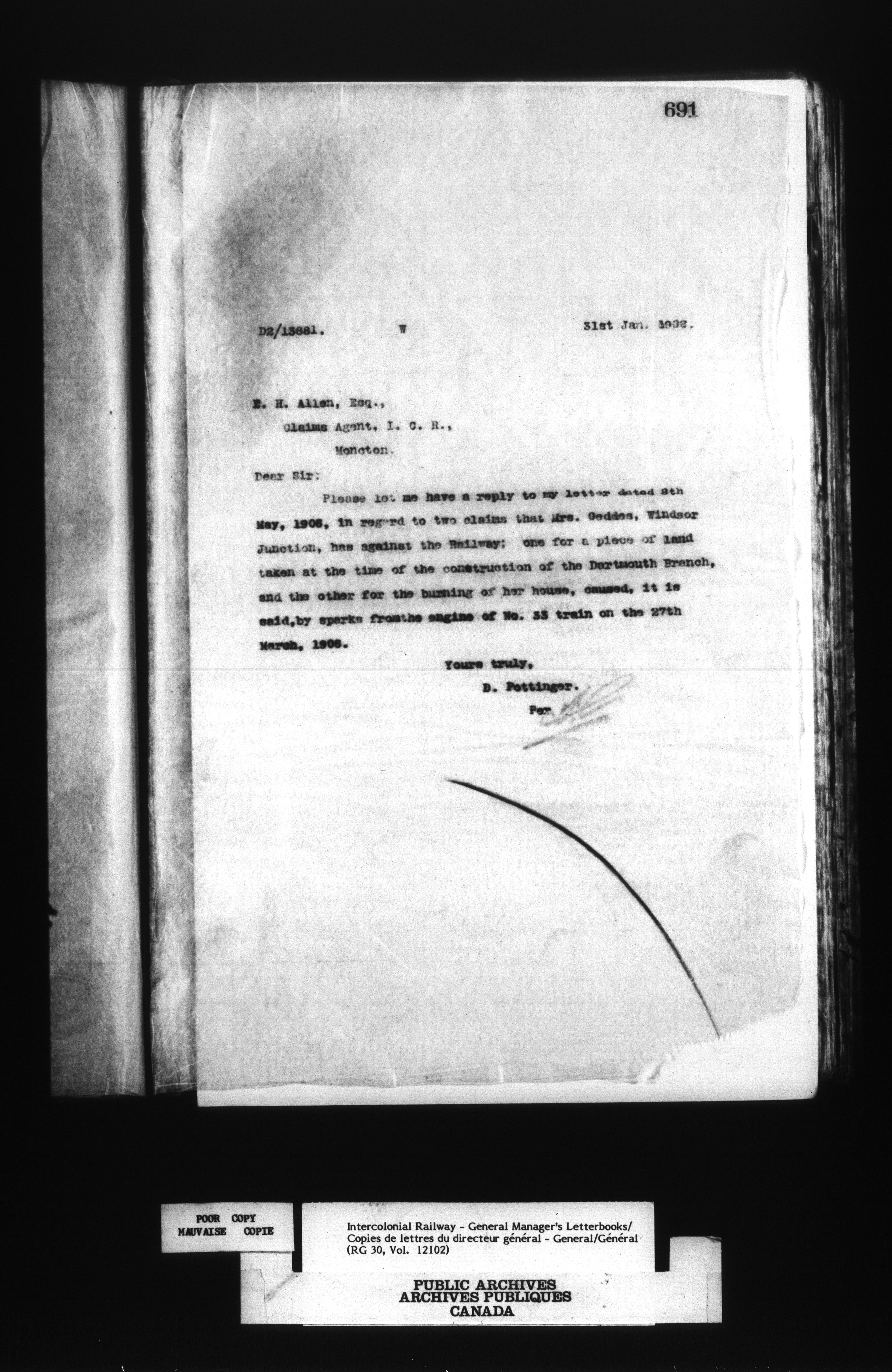 Canadian Government Railways : Office of the General Manager, Outward correspondence - 12441