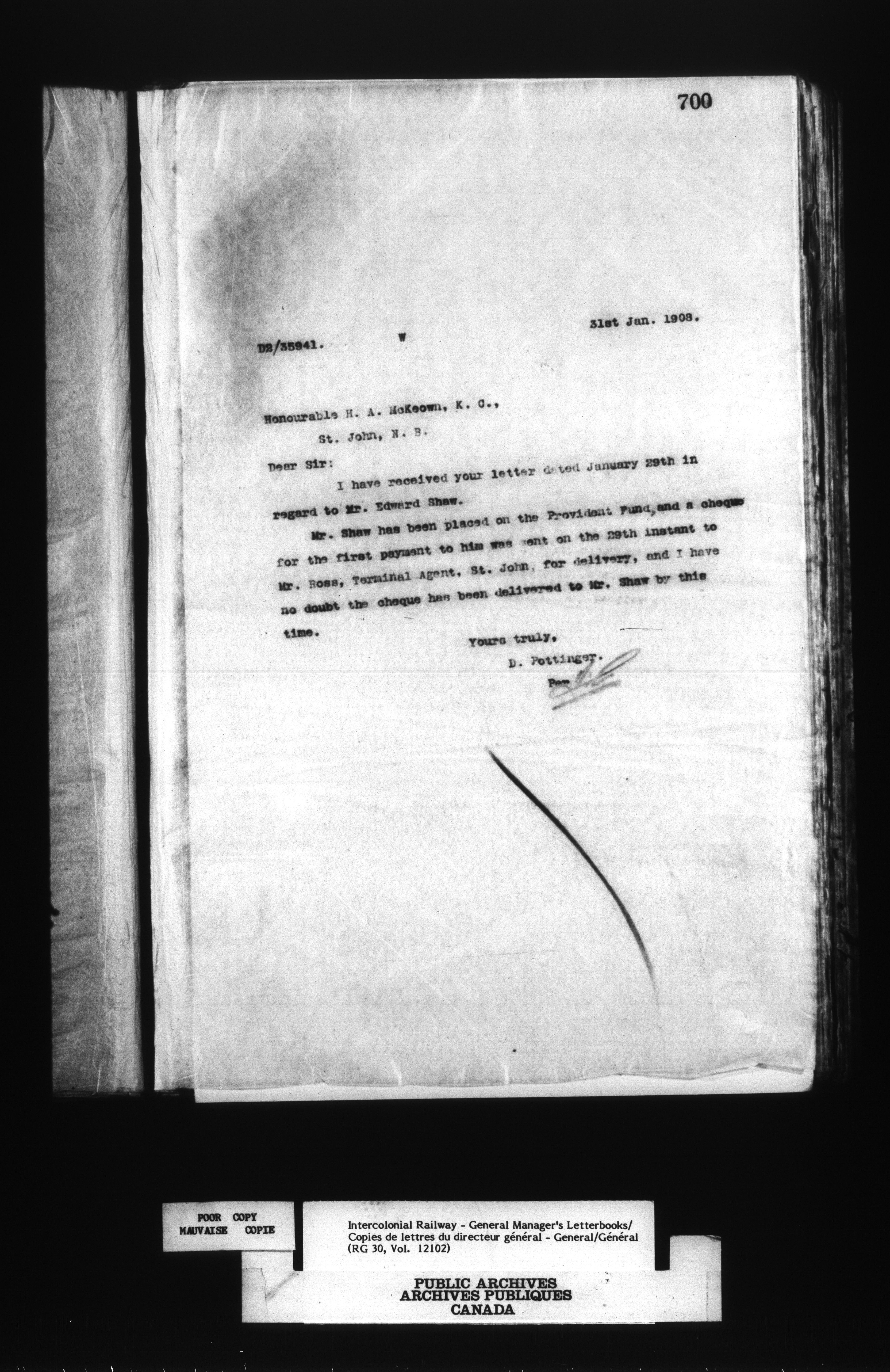 Canadian Government Railways : Office of the General Manager, Outward correspondence - 12441