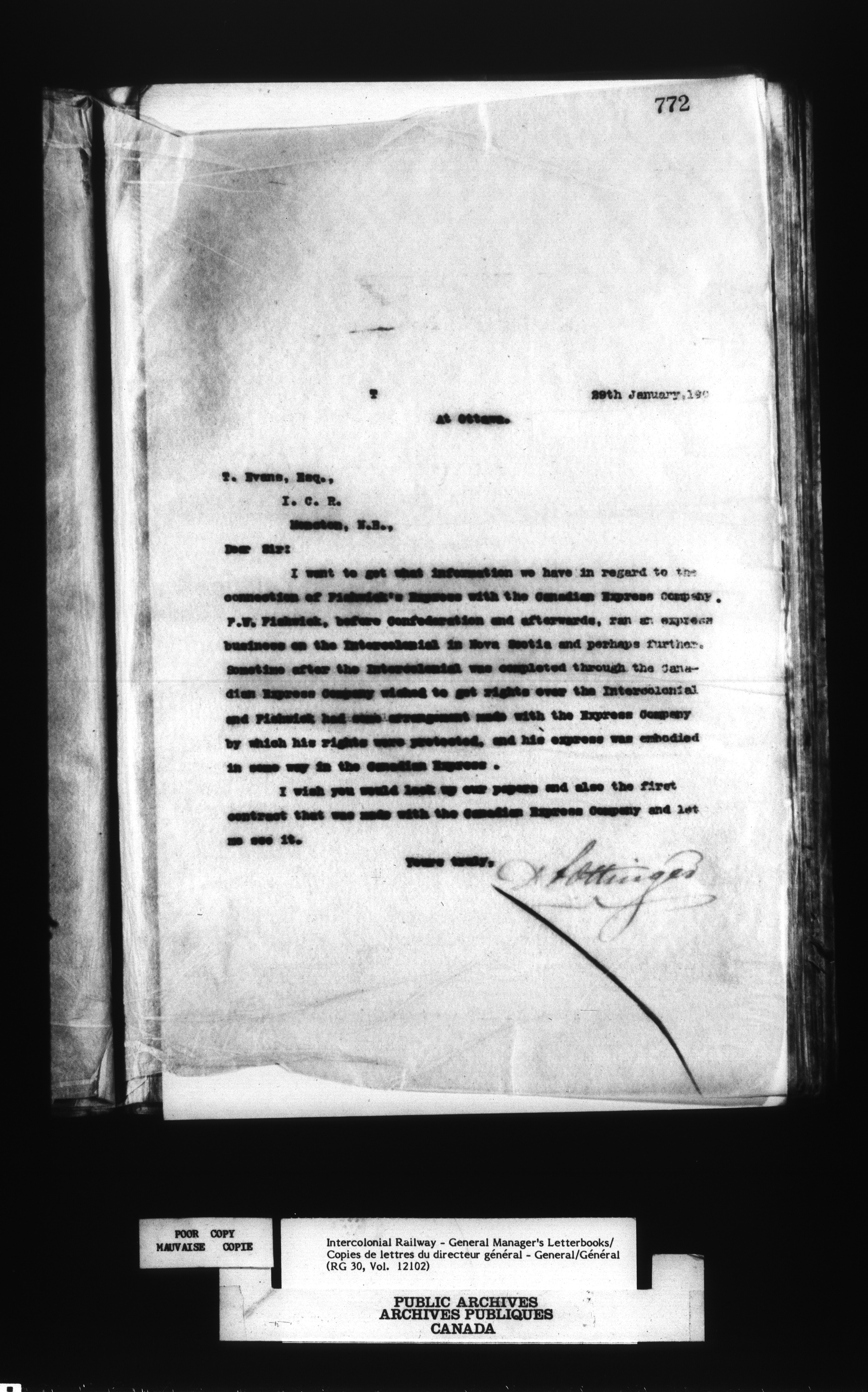 Canadian Government Railways : Office of the Chief Superintendent, Outward correspondence : C-12441