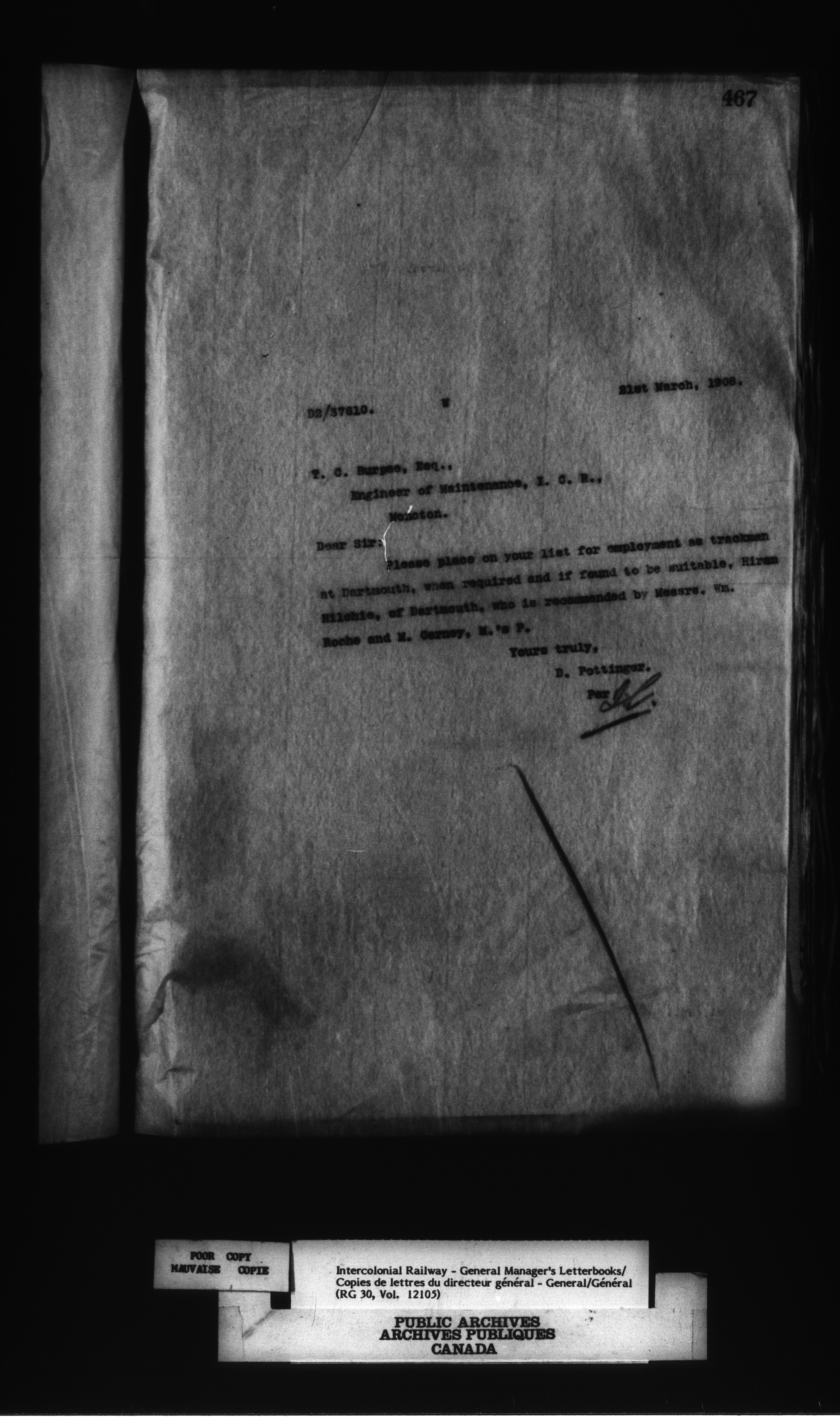 Canadian Government Railways : Office of the General Manager, Outward correspondence - 12443