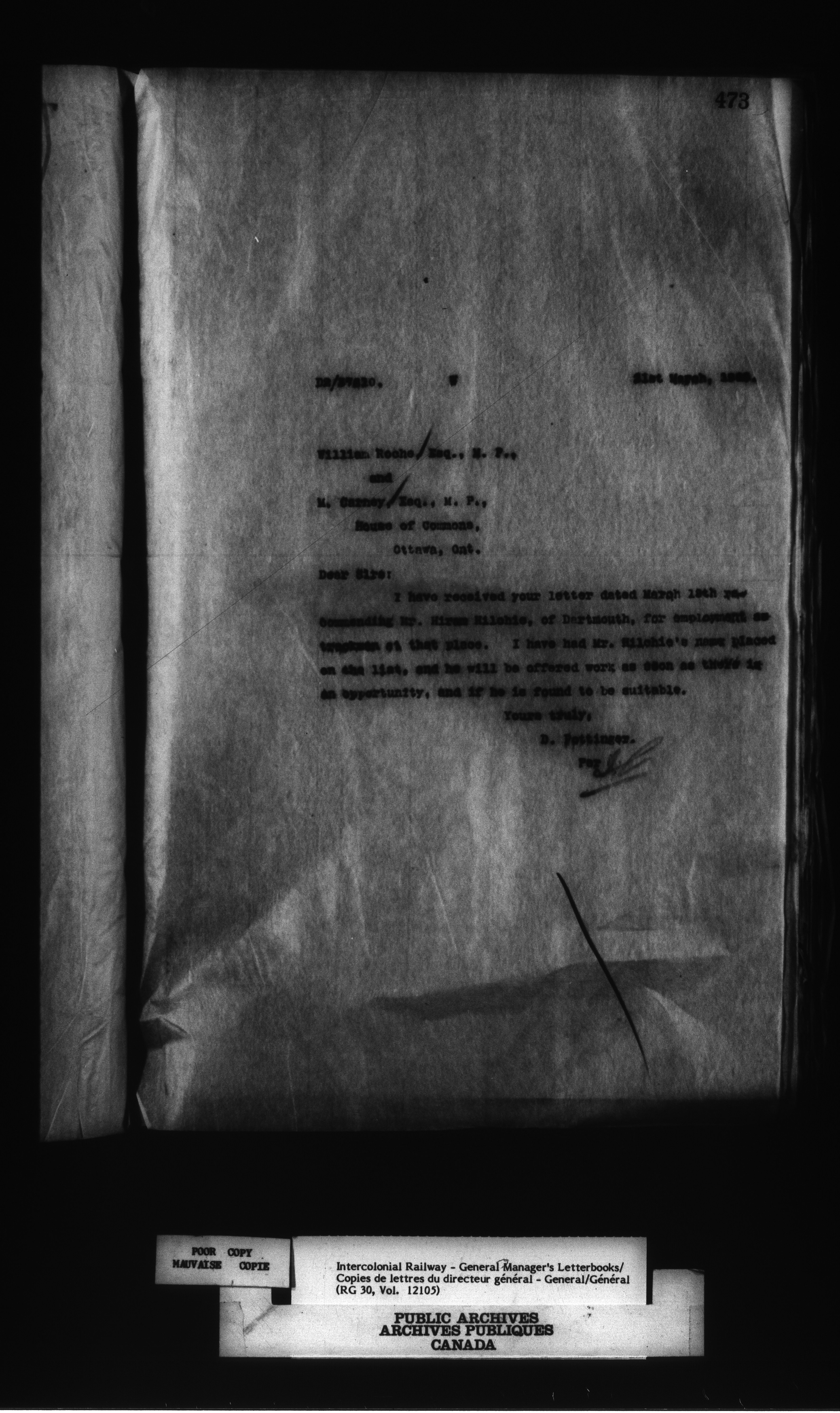 Canadian Government Railways : Office of the General Manager, Outward correspondence - 12443