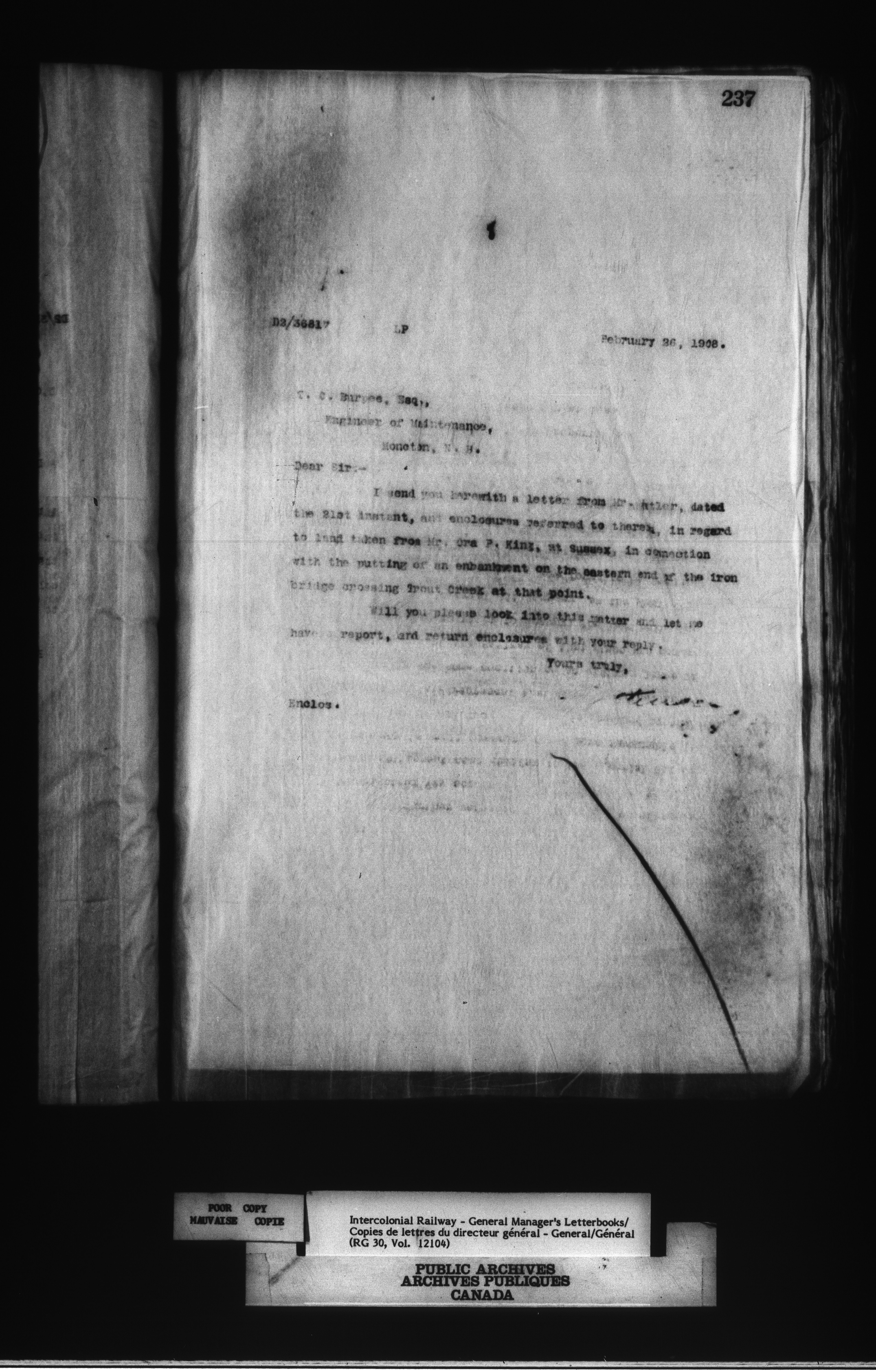 Canadian Government Railways : Office of the General Manager, Outward correspondence - 12443