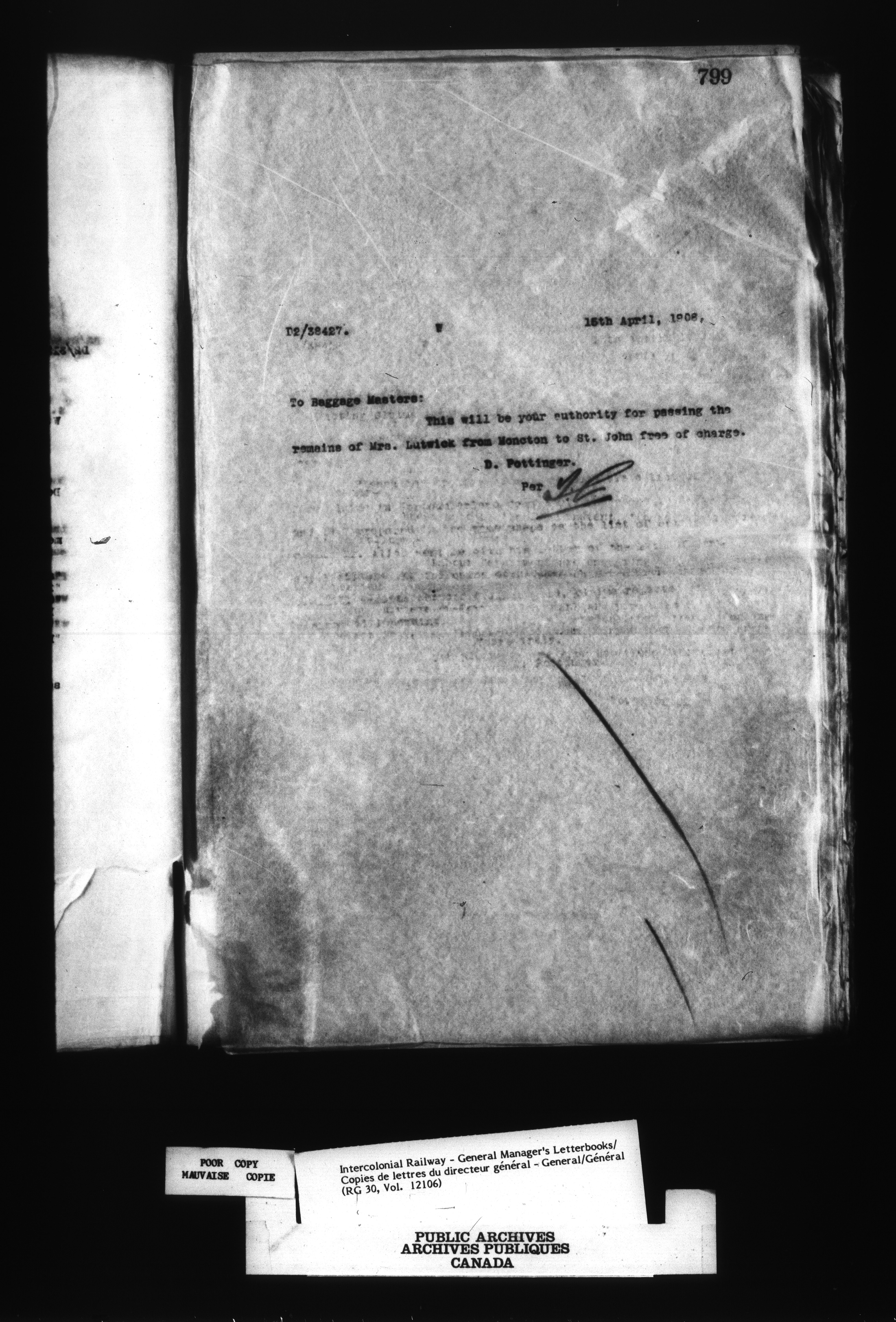 Canadian Government Railways : Office of the General Manager, Outward correspondence - 12444